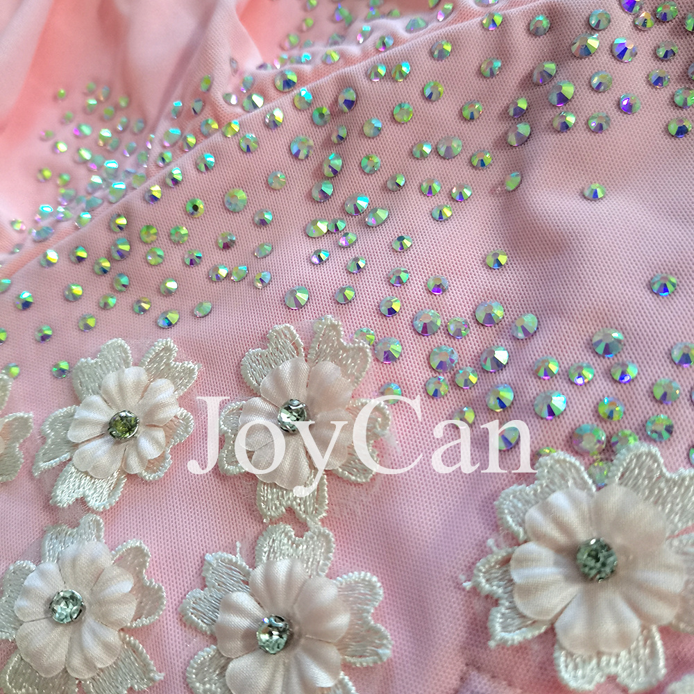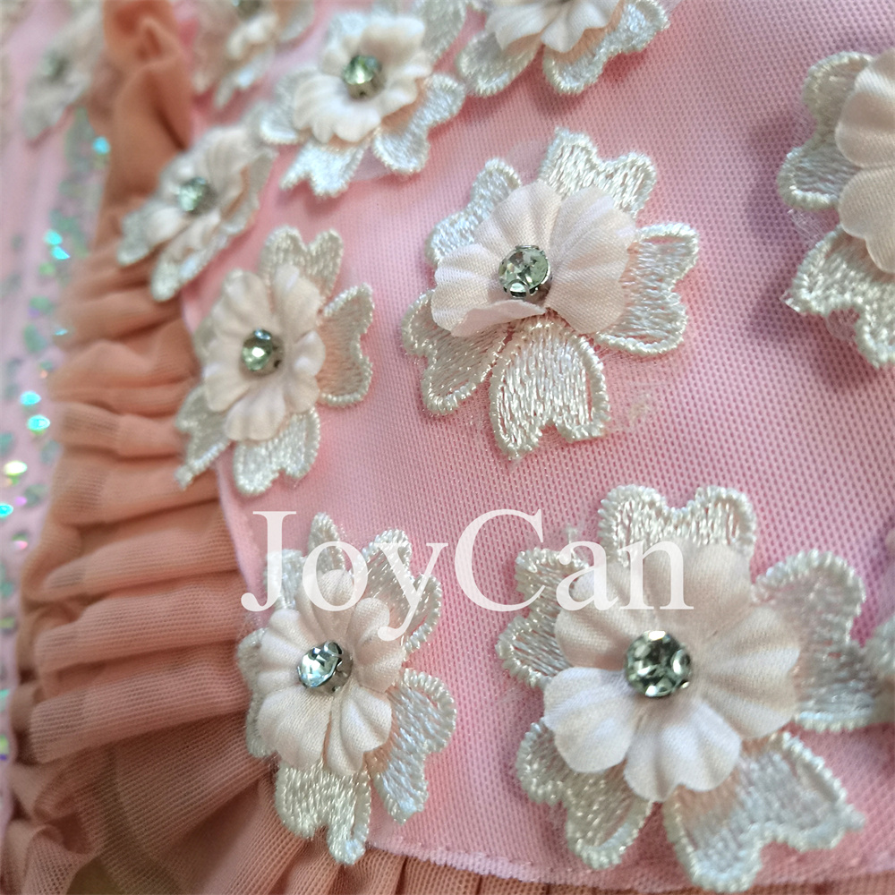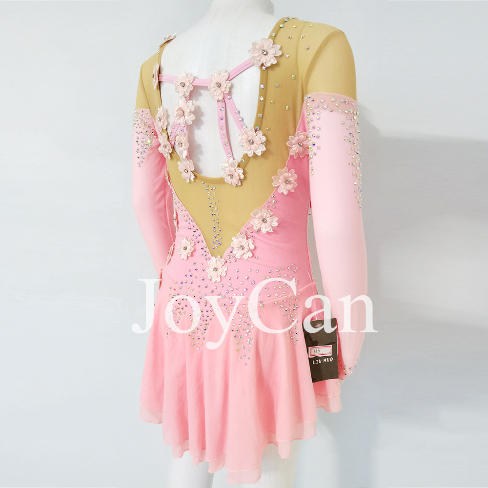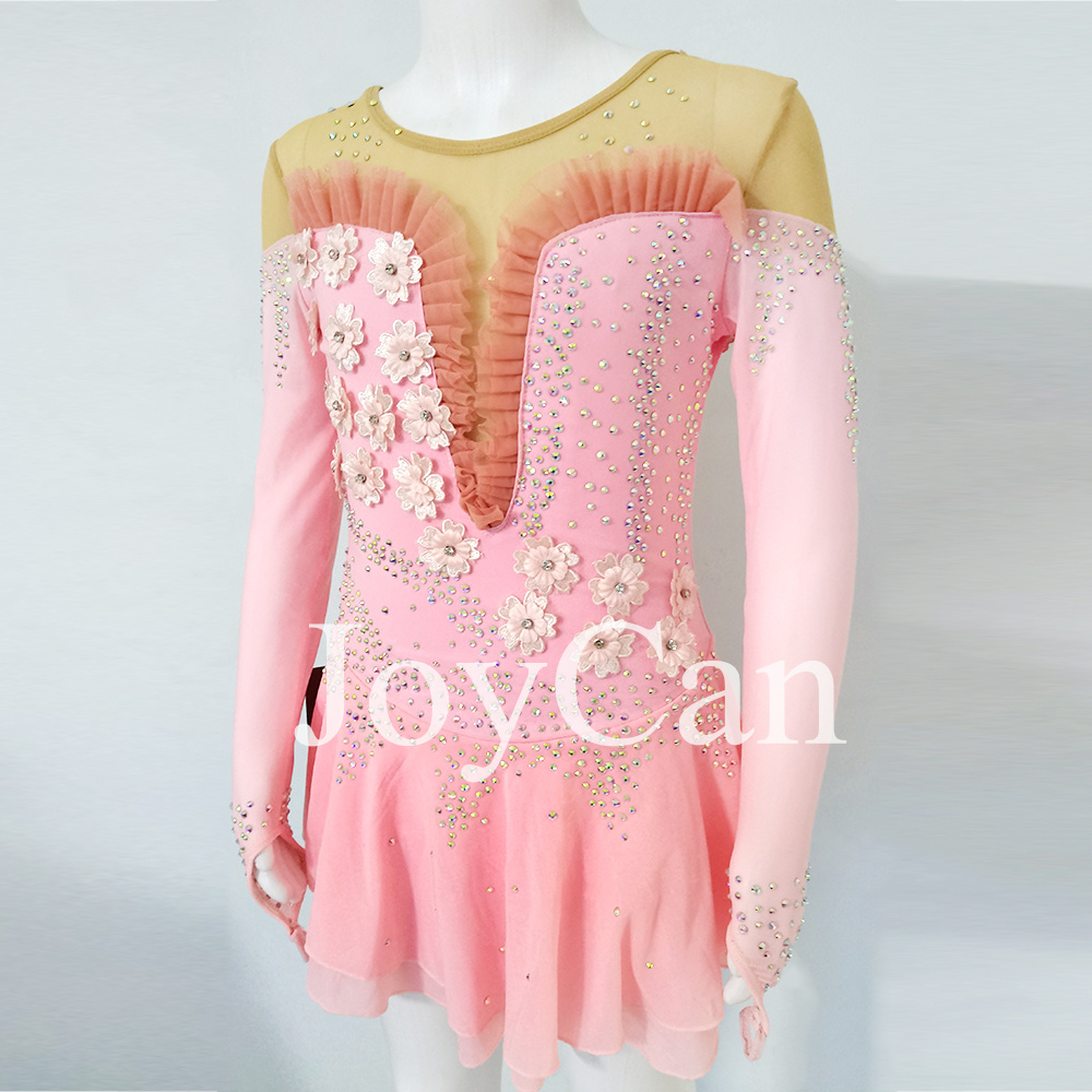 Introducing our stunning new figure skating dress, designed to make you stand out on the ice with its elegant and feminine style. This beautiful dress features a delicate pink color that exudes grace and sophistication, perfect for adding a touch of romance to your performance. The intricate lace detailing on the chest adds a touch of vintage charm, while the fabric flowers embellishments create a whimsical and ethereal look that will captivate the audience. Crafted with the highest quality materials, this figure skating dress is not only stylish but also functional. The fabric is designed to provide maximum comfort and flexibility, allowing you to move with ease and confidence as you glide across the ice. The dress is tailored to fit your body perfectly, accentuating your every movement and ensuring that you look and feel your best while performing. Whether you're a competitive figure skater or simply enjoy skating for leisure, this dress is a must-have addition to your wardrobe. Its timeless design and attention to detail make it a versatile piece that can be worn for practice sessions, competitions, or even special performances. The soft pink hue is universally flattering and complements a variety of skin tones, making it a versatile choice for skaters of all ages and levels. Make a statement on the ice with our figure skating dress, and let your personality shine through as you showcase your skills. Whether you prefer classic elegance or a more whimsical look, this dress offers the perfect balance of style and performance. Elevate your skating experience with this enchanting dress that combines beauty, comfort, and functionality in one stunning package. It's time to take your performance to the next level with our exquisite figure skating dress.