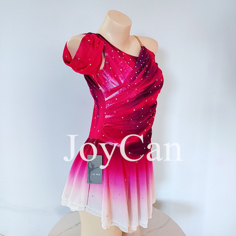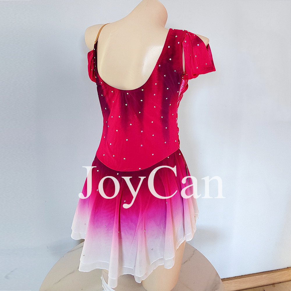 JoyCan Ice Skating Dress For Competition Girls Blue Gradient Figure Skating Dress Red