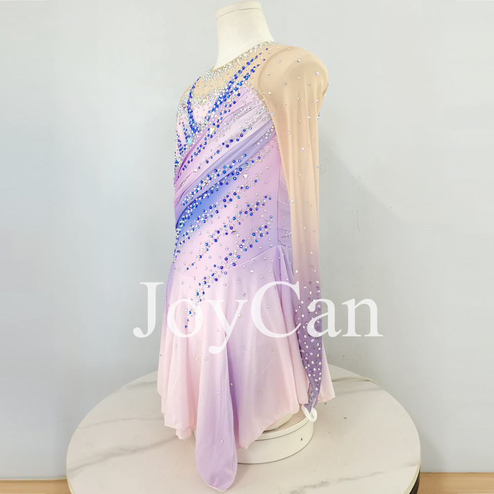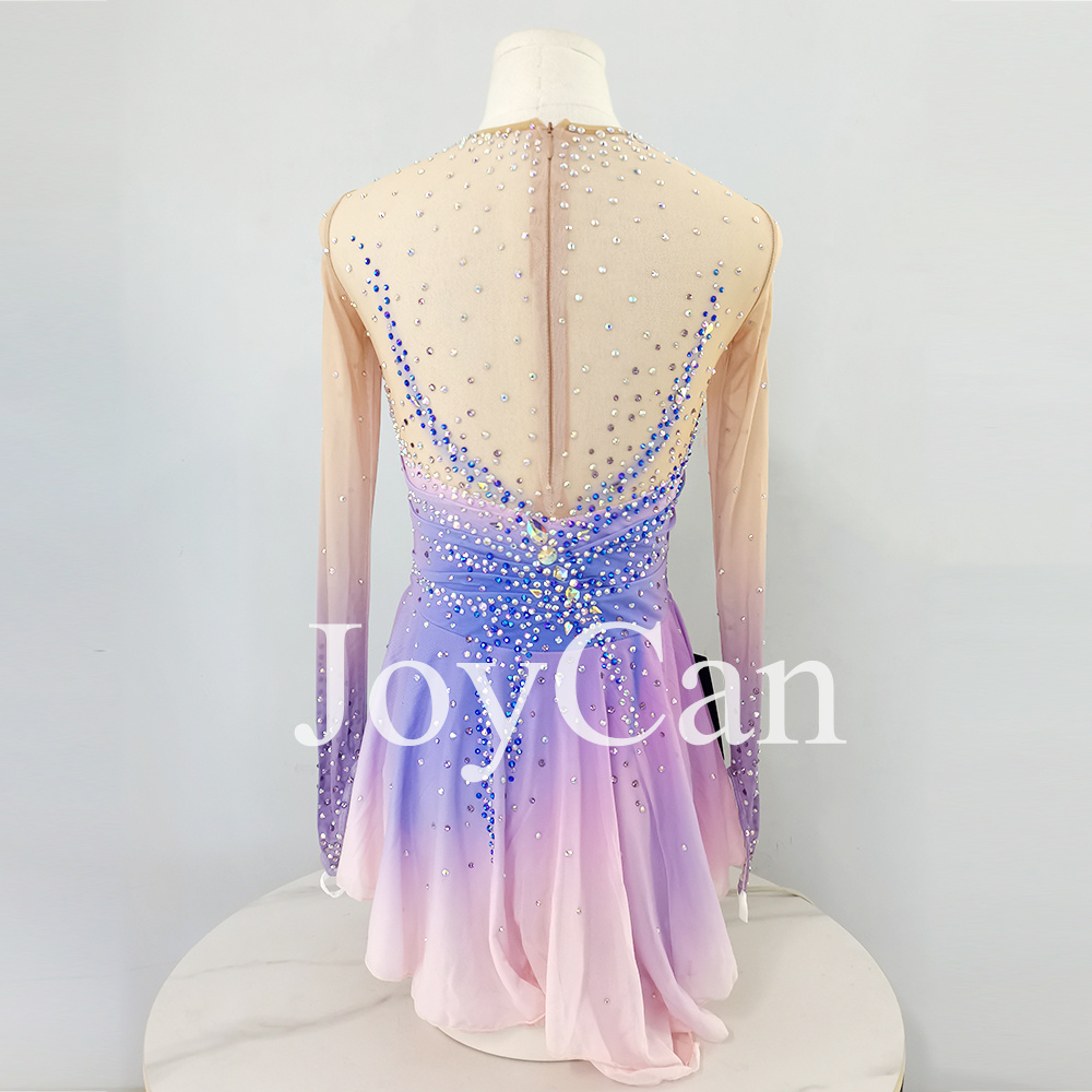JoyCan Ice Skating Dress For Competition Girls Pink Gradient Figure Skating Dress Pink