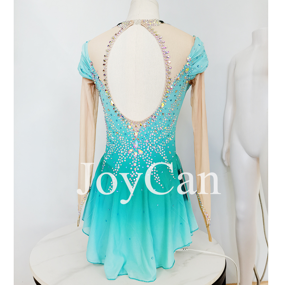 JoyCan Ice Skating Dress For Competition Girls Turquoise Gradient Figure Skating Dress Turquoise