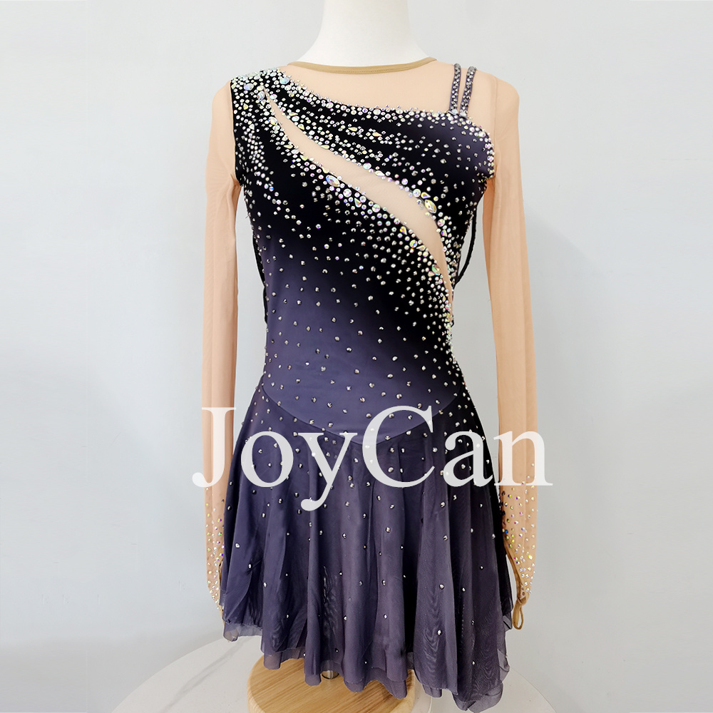 JoyCan Ice Skating Dress For Competition Girls Black Gradient Figure Skating Dress Black