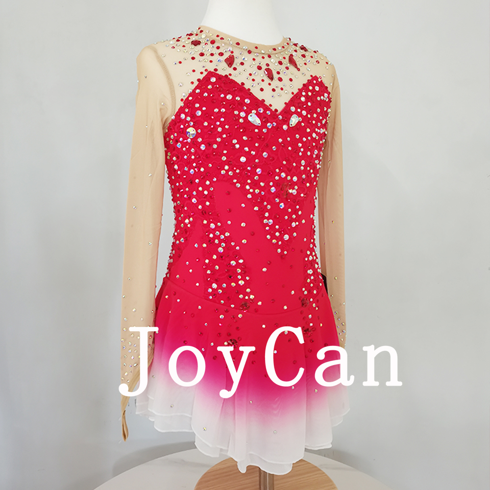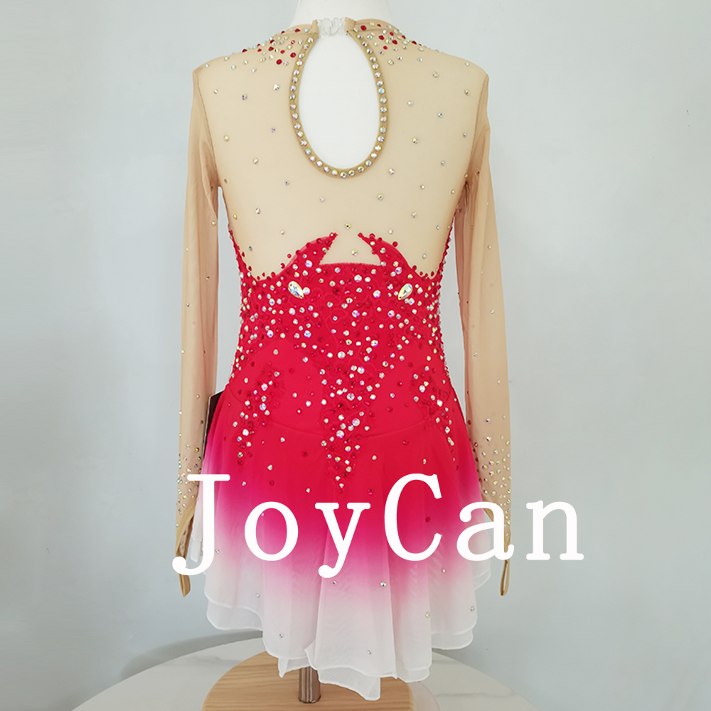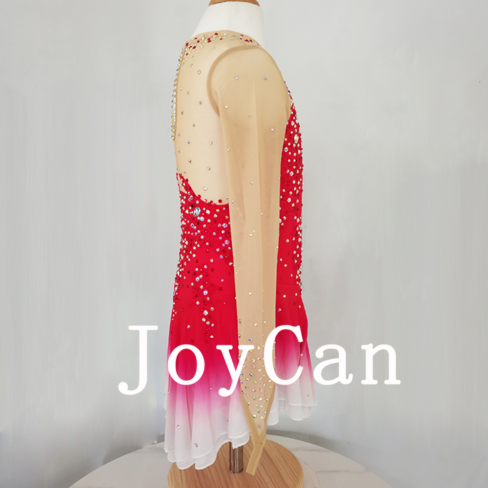 JoyCan Ice Skating Dress For Competition Girls Blue Gradient Figure Skating Dress Red