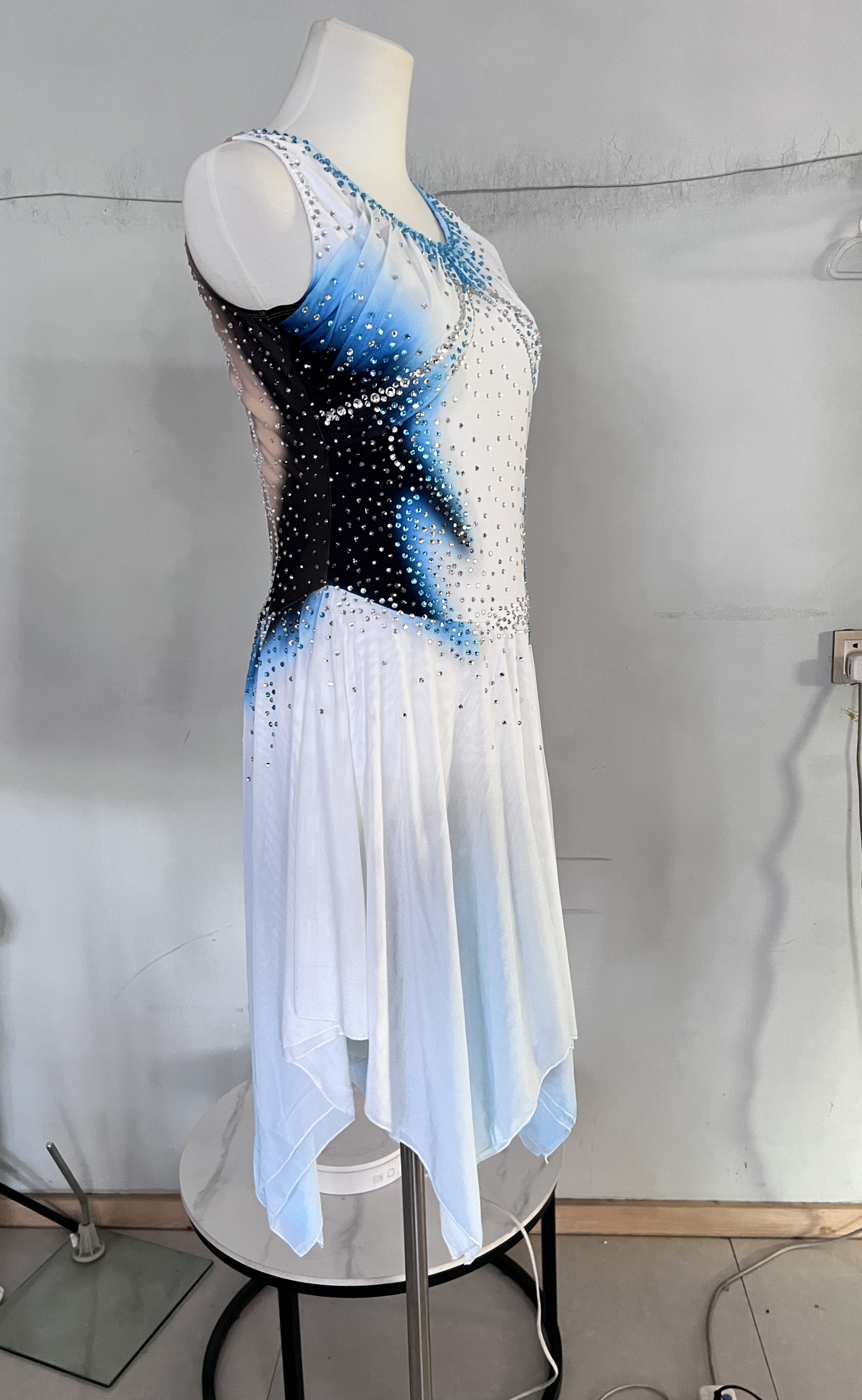 Handmade costumes, the quality crystals are glued one by one. Combining stunning aesthetics with high-performance fabric for maximum comfort.