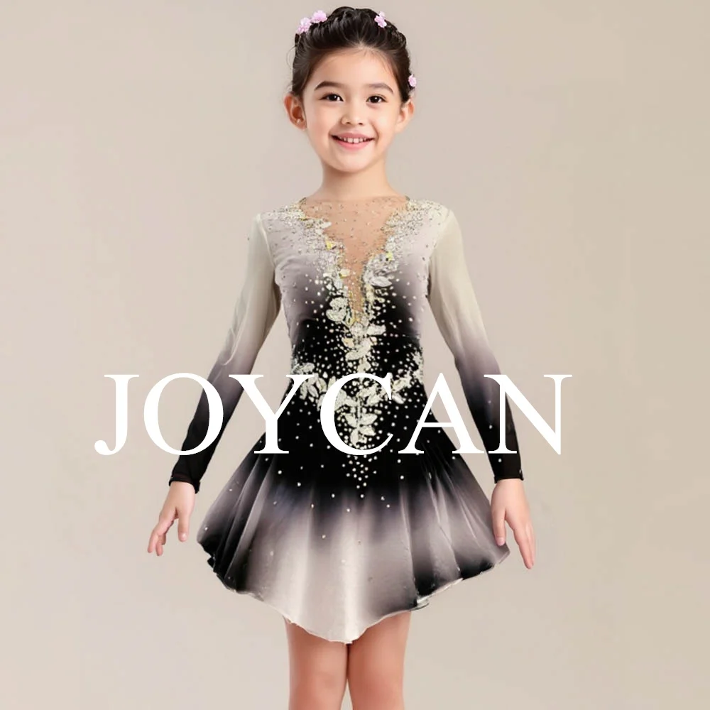 • Ice Figure Skating Dress for Girls Black Spanex Stretchy Competition Dance Wear Customized