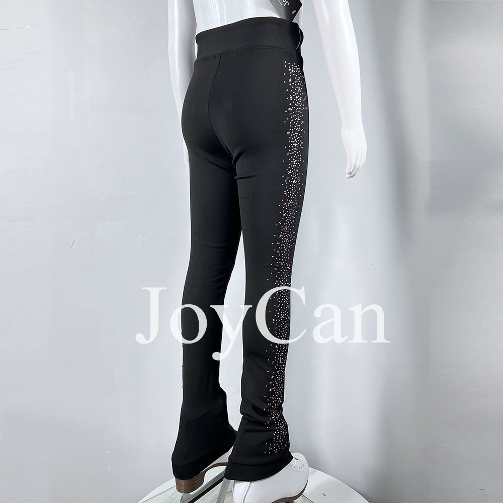 JoyCan Ice Skating Pants Girls Black Fleece Inside Stretchy Striped Leggings For Kids Adult