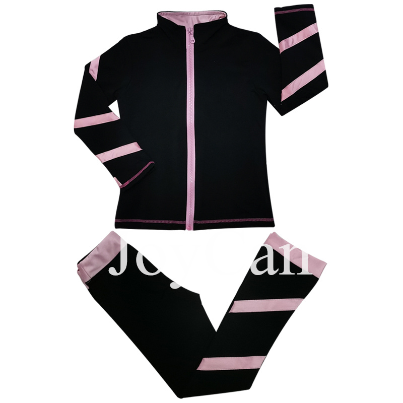 JoyCan Ice Skating Pants Girls Black Fleece Inside Stretchy Striped Leggings For Kids Adult