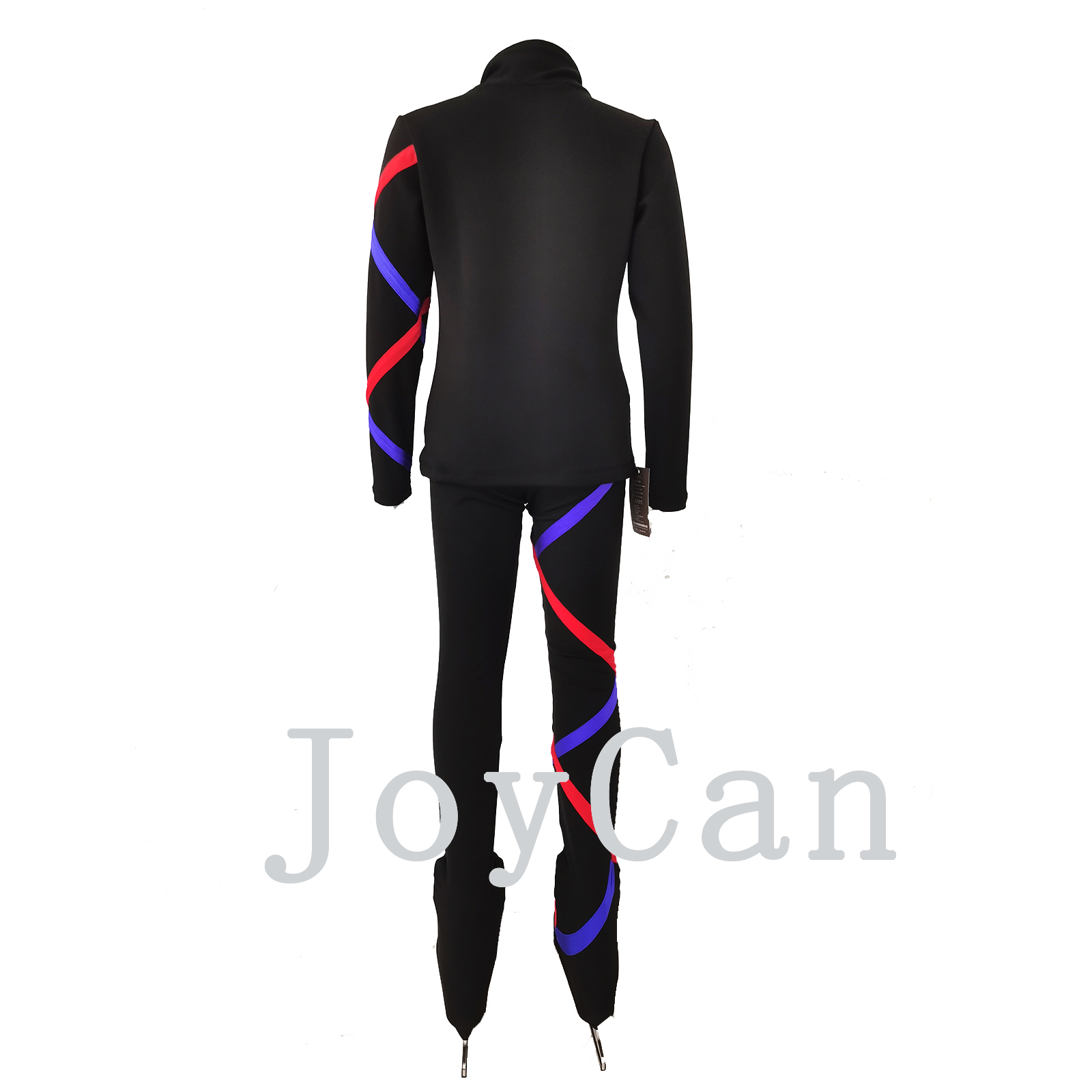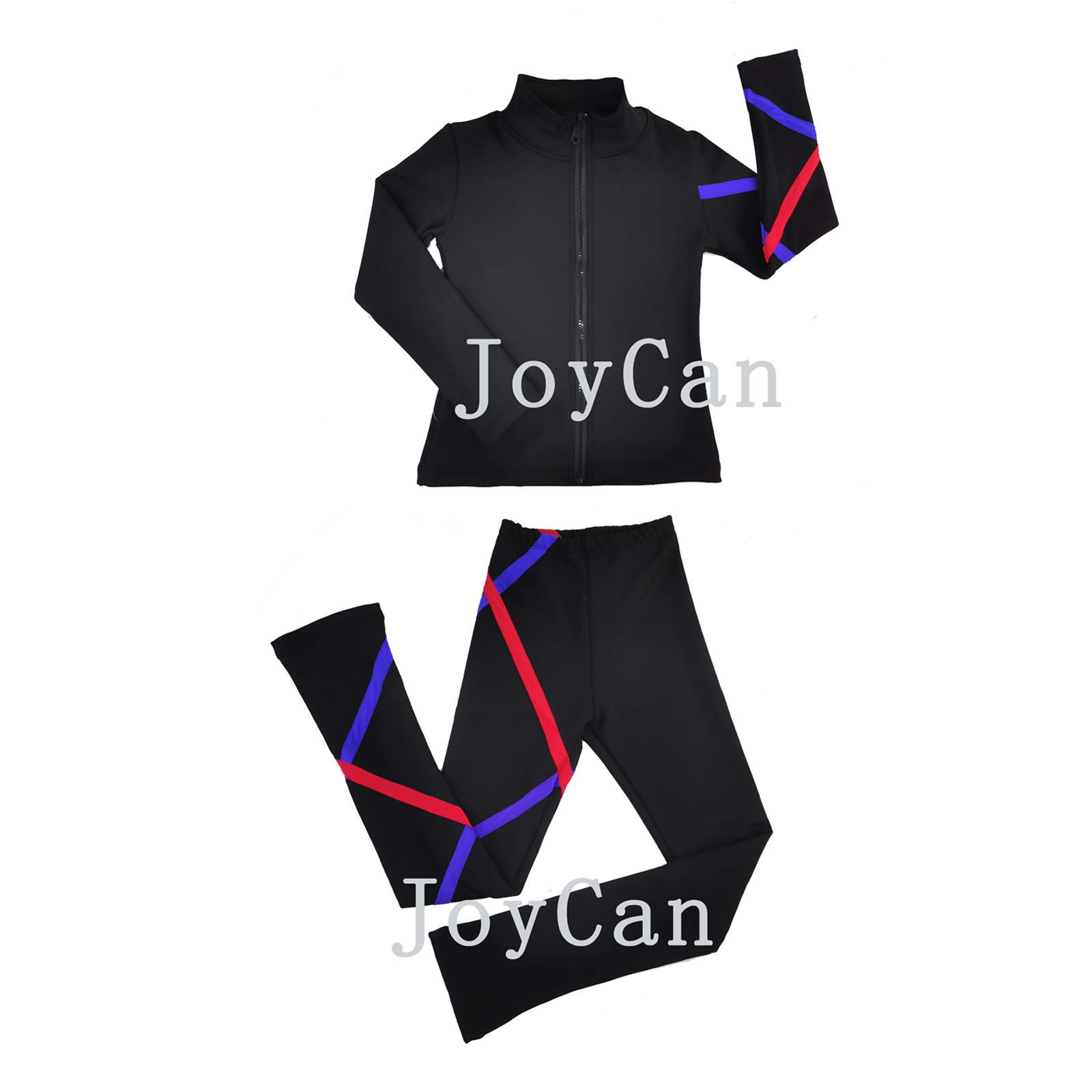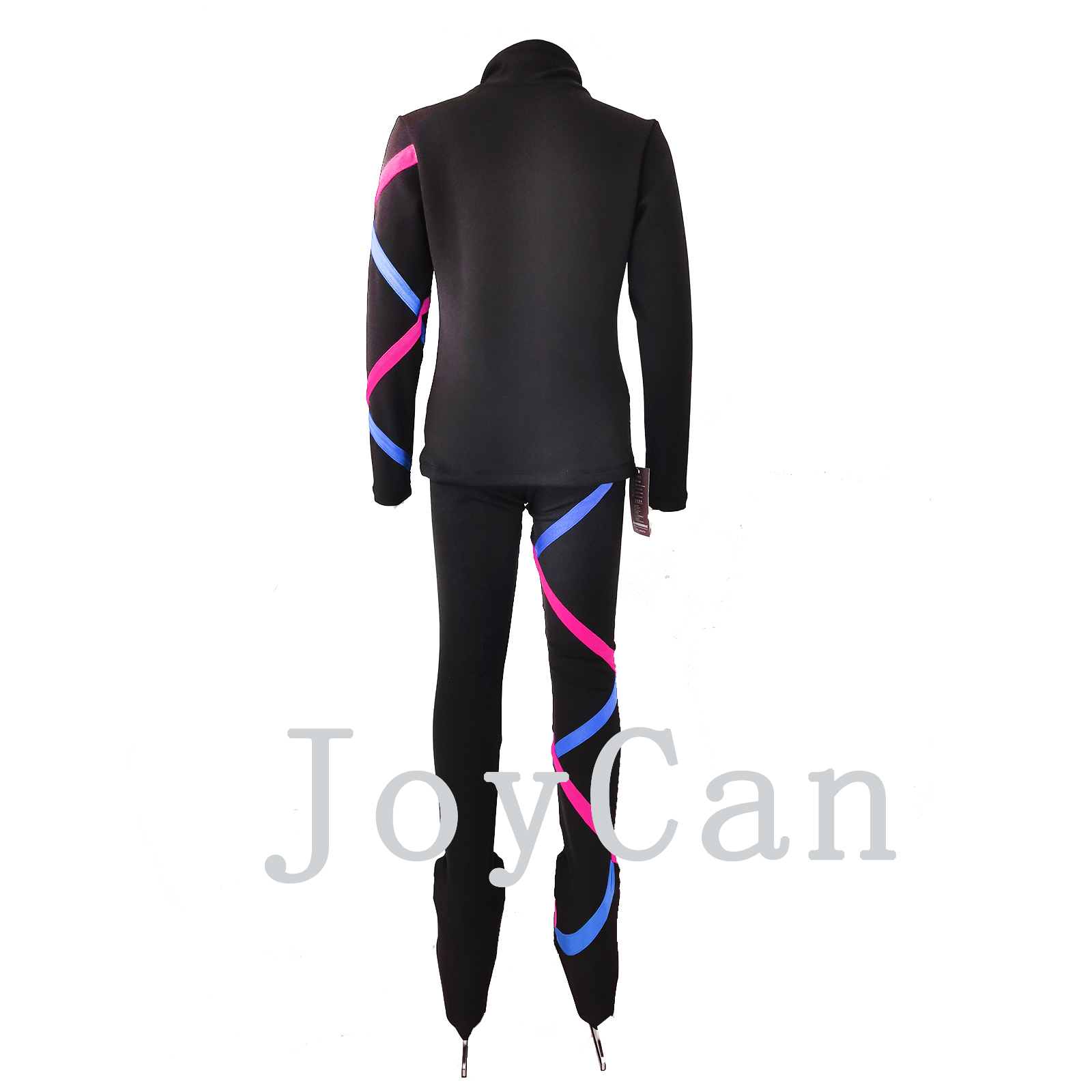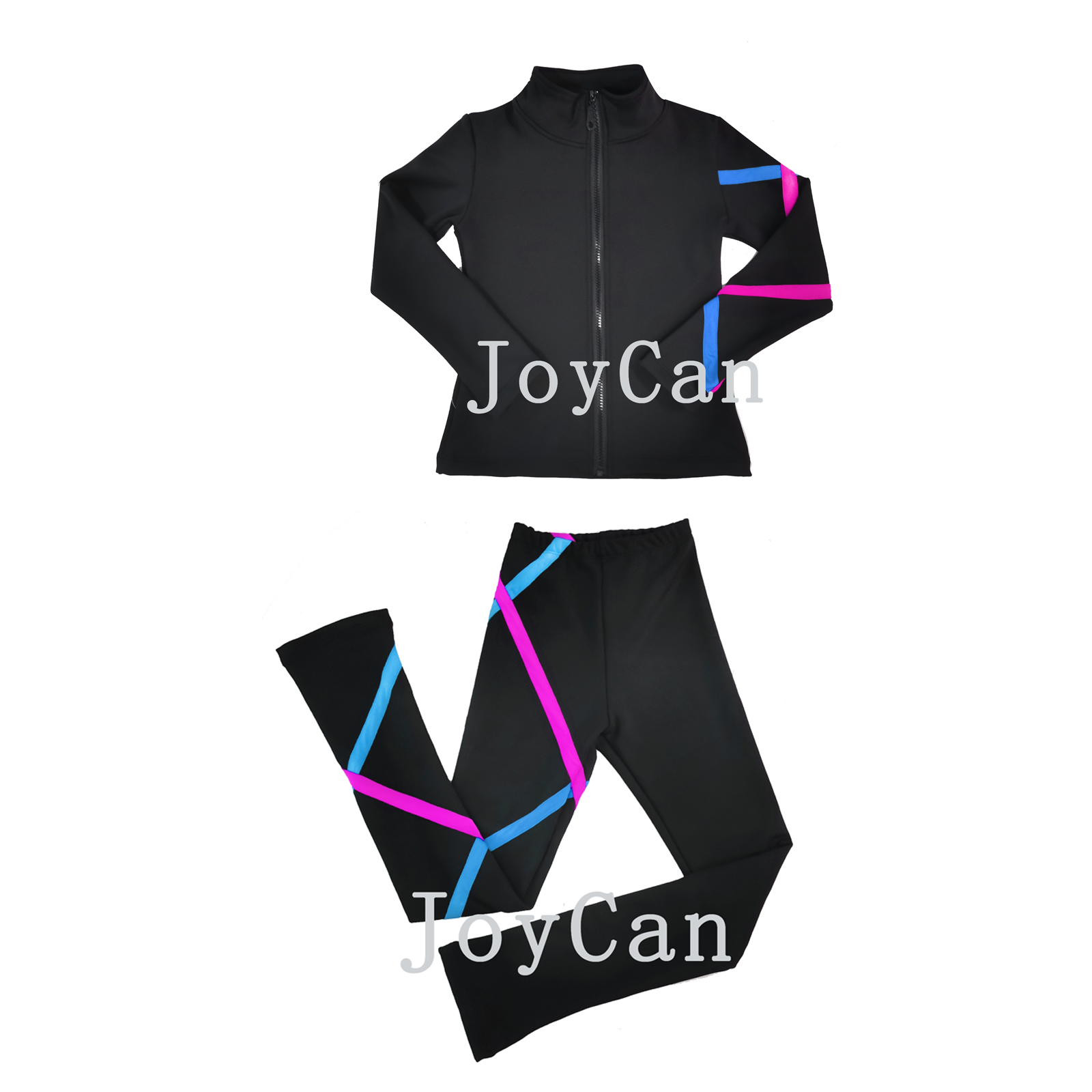 JoyCan Ice Skating Pants Jackets Sets Girls Black Fleece Inside Stretchy Striped Leggings With Skirt For Kids Adult