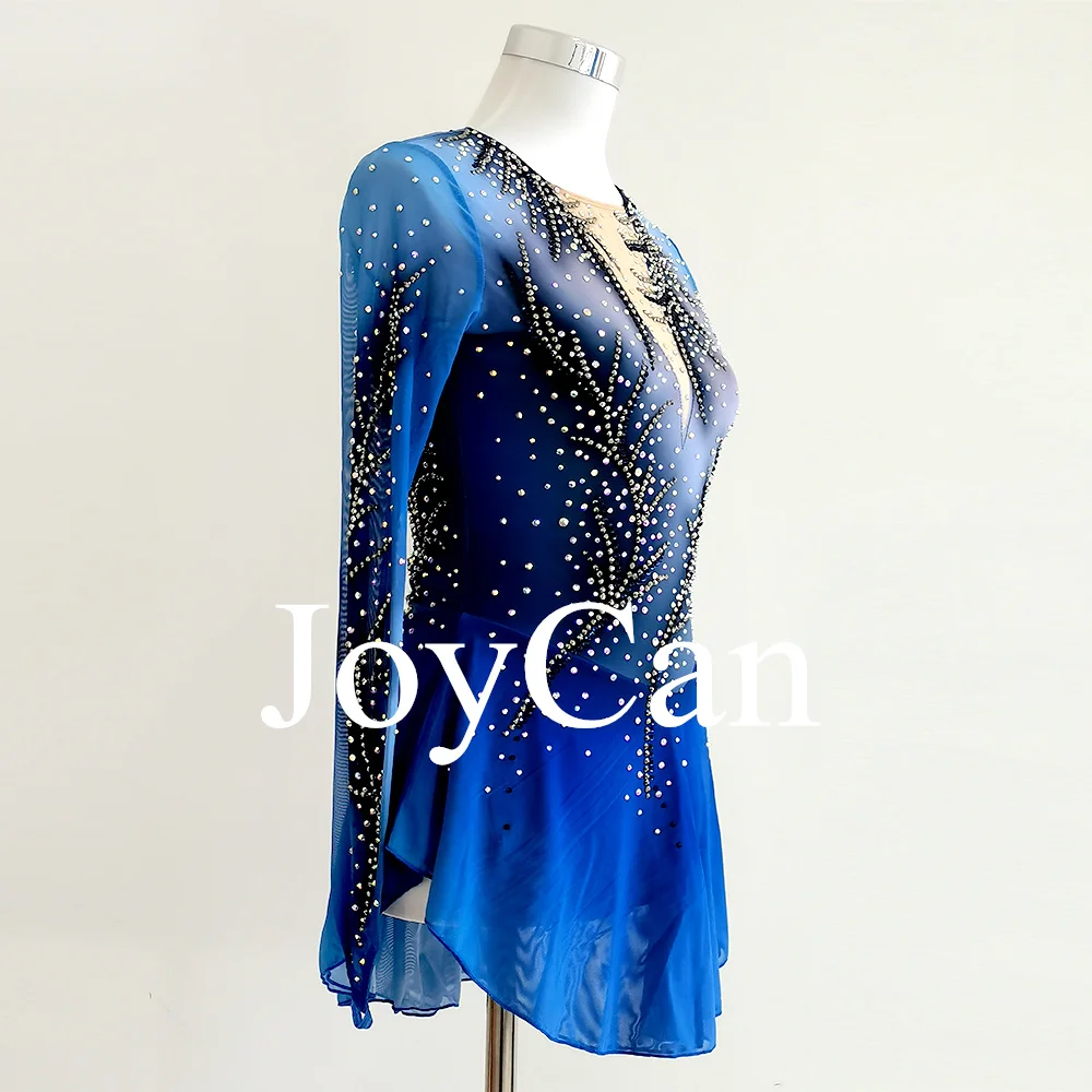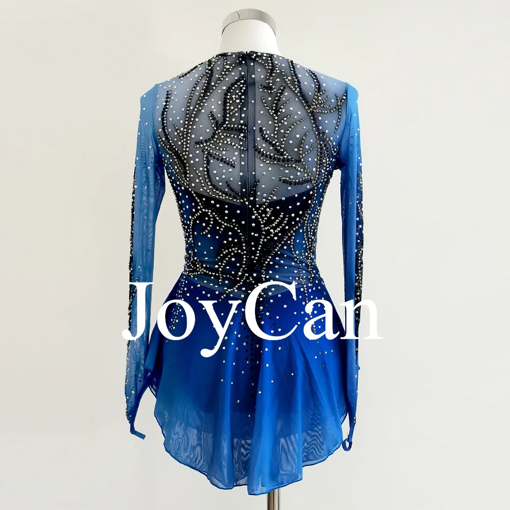 • JoyCan Figure Skating Dress Girls Blue Print Sparkling Rhinestones Competition Performance Leotards Customize