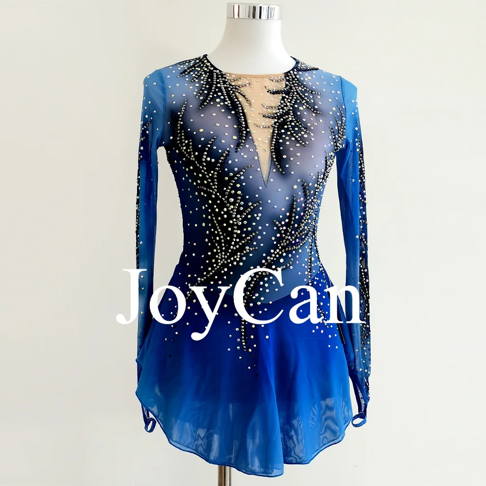 JoyCan Figure Skating Dress Girls Blue Print Sparkling Rhinestones Competition Performance Leotards Customize