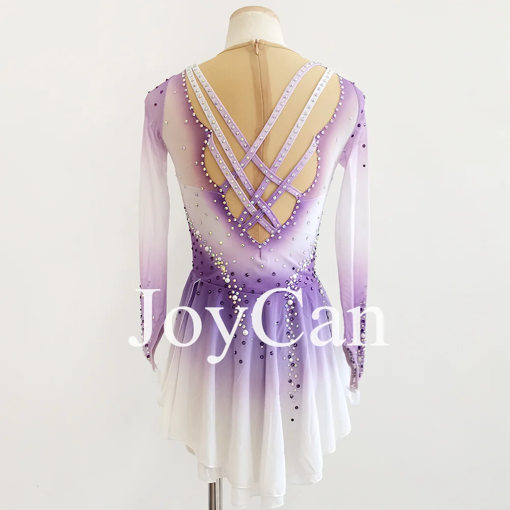 JoyCan Figure skating dress Girls Women Purple Spandex Elegant Dance Wear for Competitiion