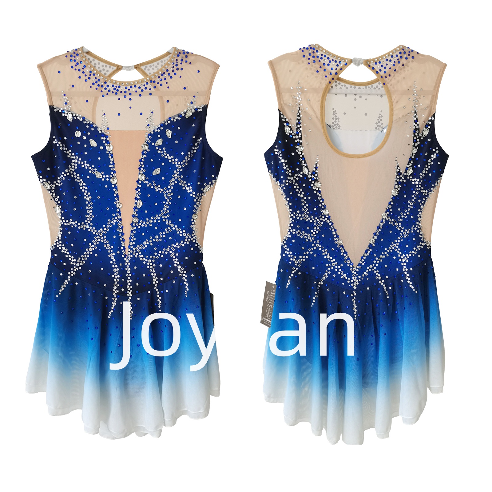 In conclusion, a sleeveless figure skating dress in blue, embellished with gemstones, is not just a piece of clothing; it’s a statement of artistry and athleticism. For skaters aiming to shine both in performance and style, this combination is a winning choice that embodies the spirit of figure skating. So, lace up those skates and get ready to dazzle on the ice!