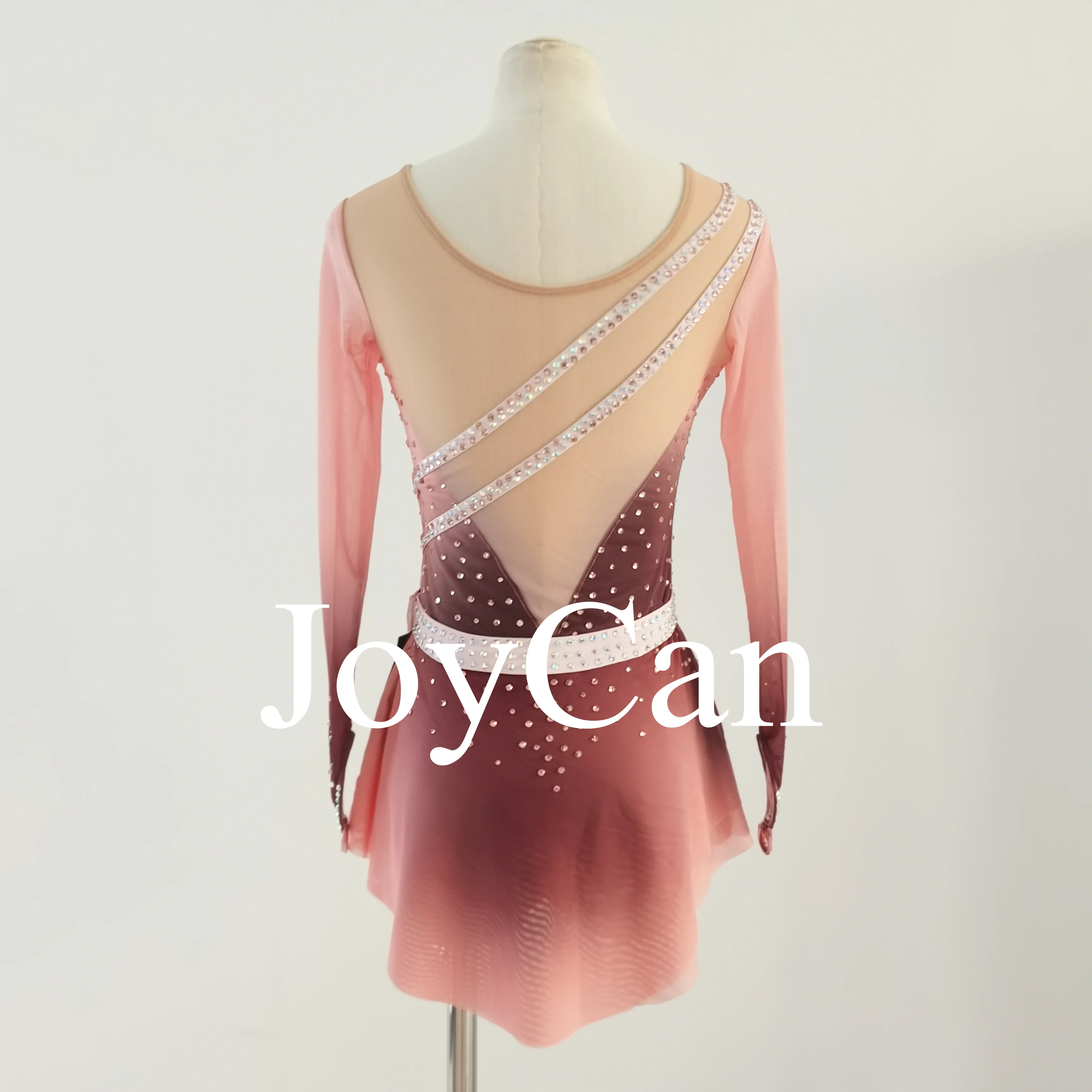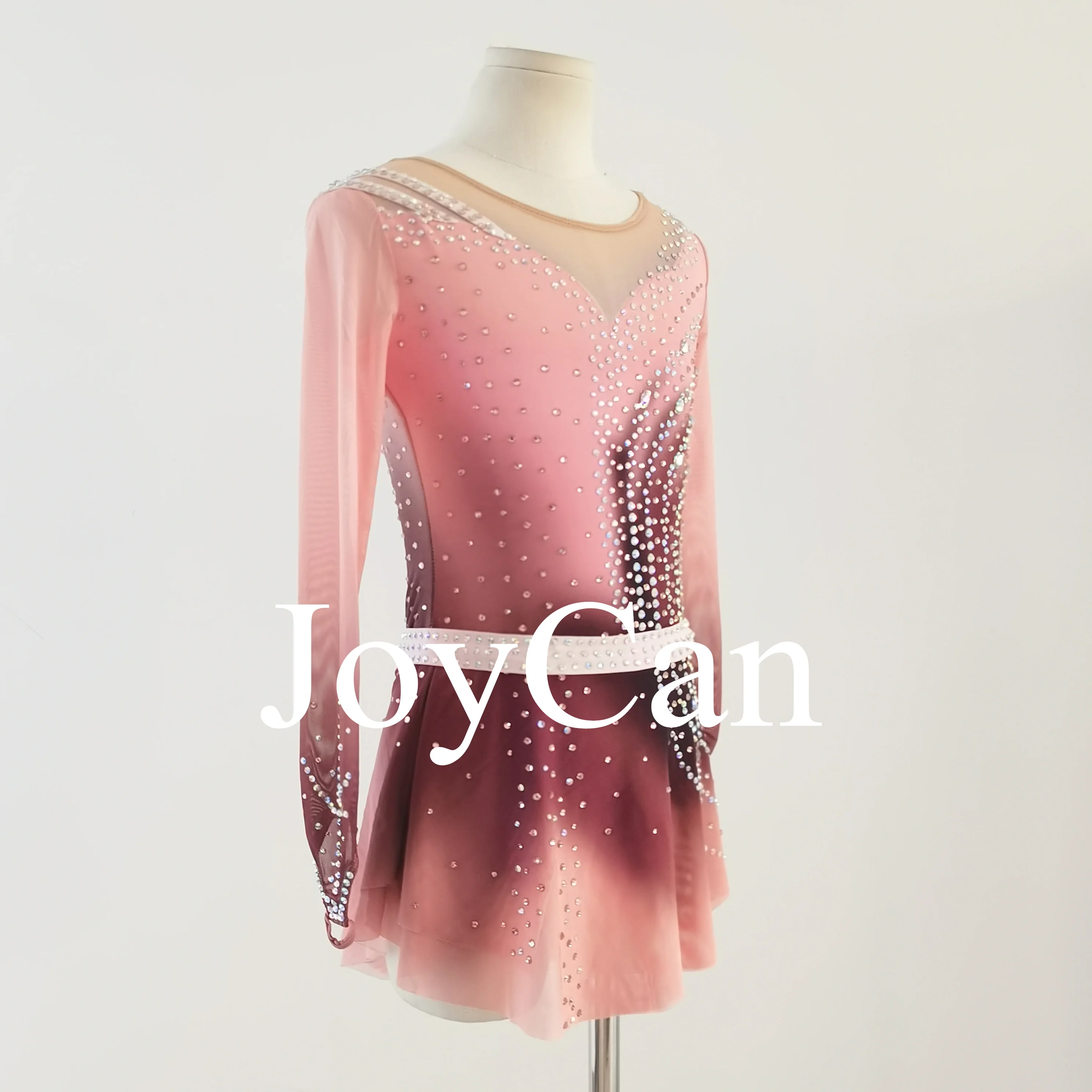 JoyCan Girls Ice Figure Skating Dress Long Sleeves Spandex Mesh Ballroom Performance Wear Latin Dance Costume