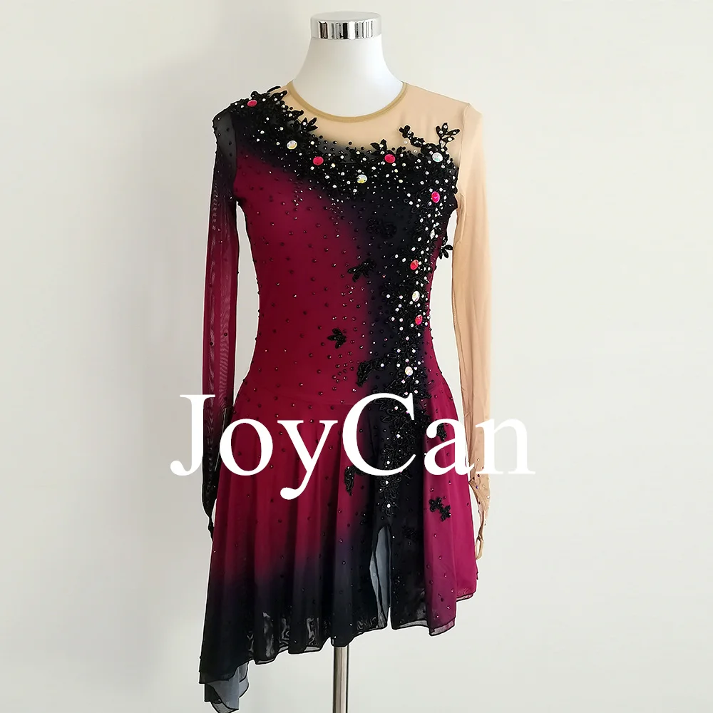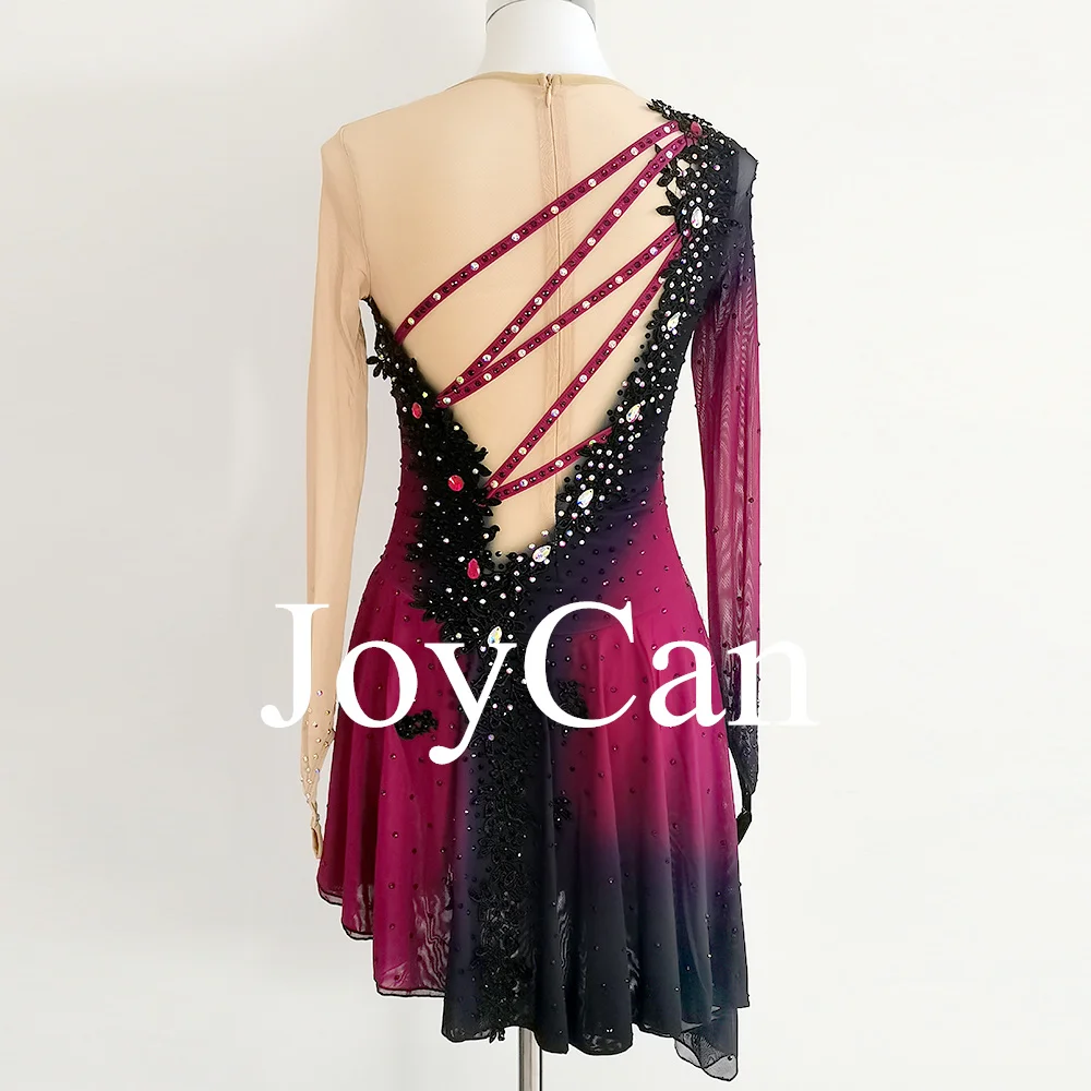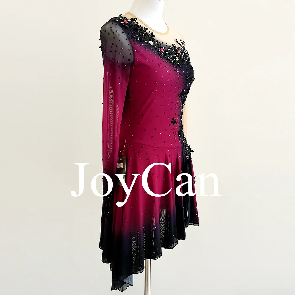 JoyCan Girls Ice Figure Skating Dress Short Sleeves Spandex Mesh Ballroom Performance Wear Latin Dance Costume