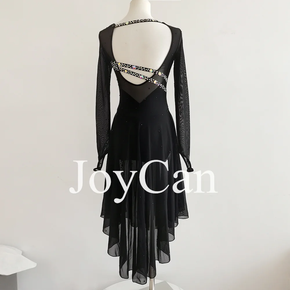 JoyCan Ice Figure Skating Dress Girls Black Spandex Stretchy Competition Dance Wear Customized