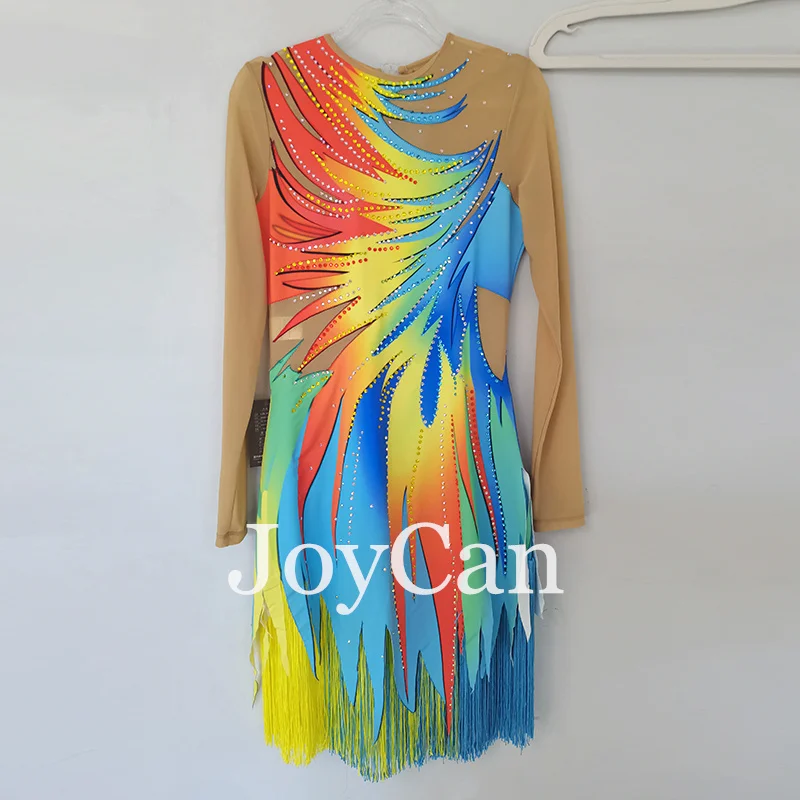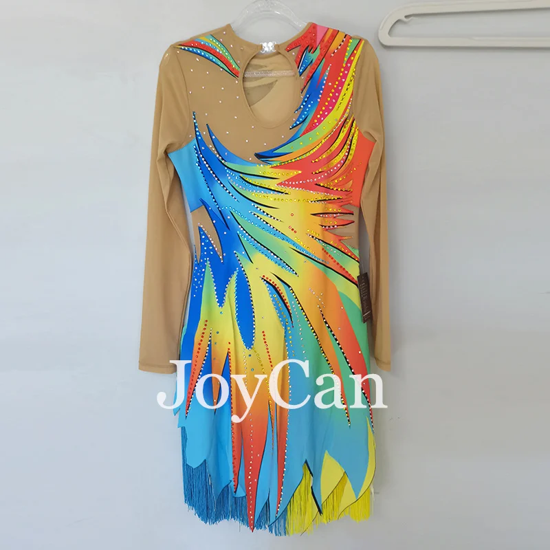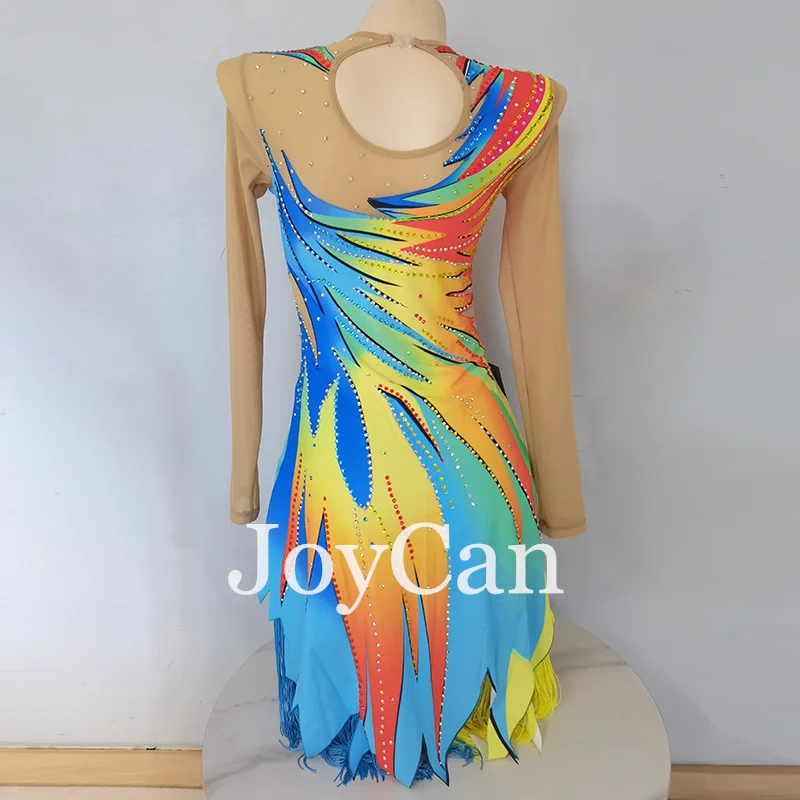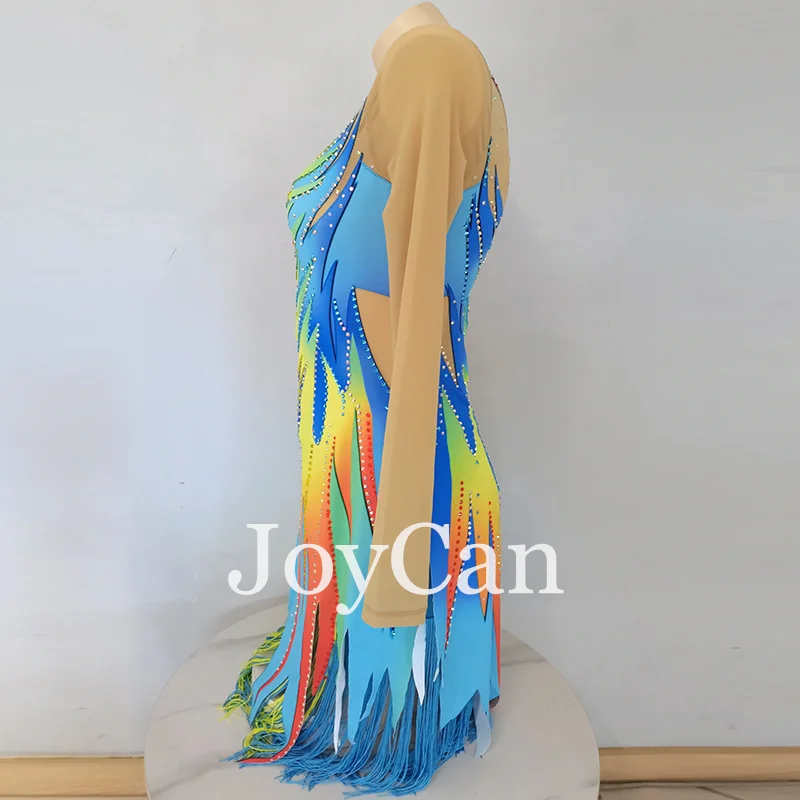 JoyCan Ice Figure Skating Dress Girls Blue Spandex Stretchy Competition Dance Wear Customized