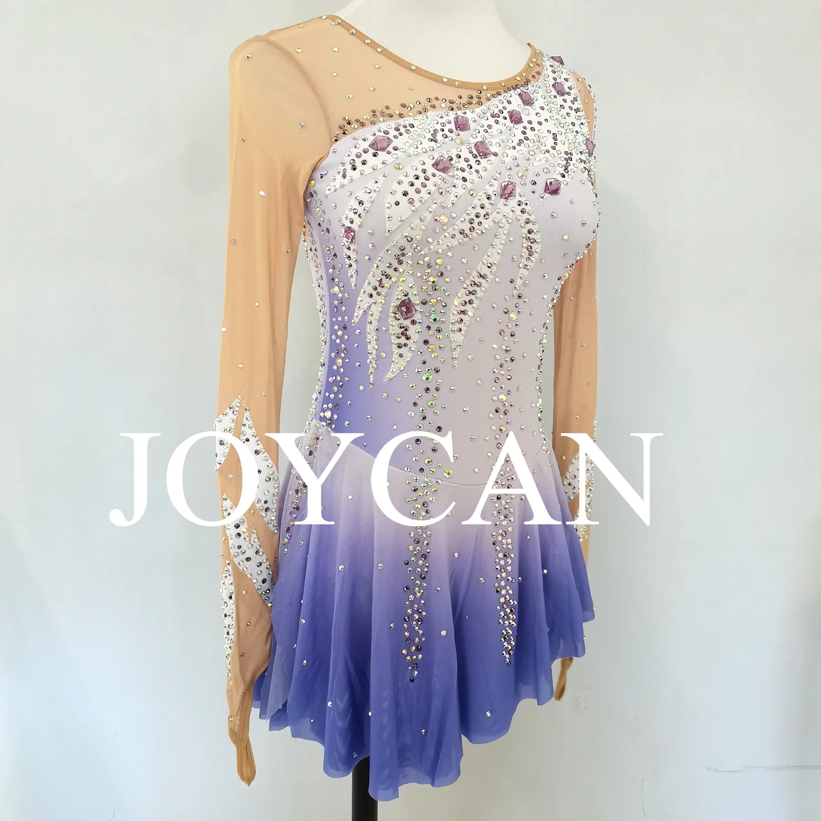 JoyCan Ice Figure Skating Dress Girls Blue Spandex Stretchy Competition Dance Wear Customized
