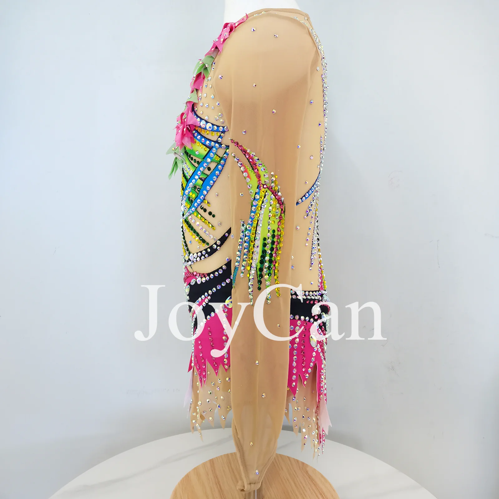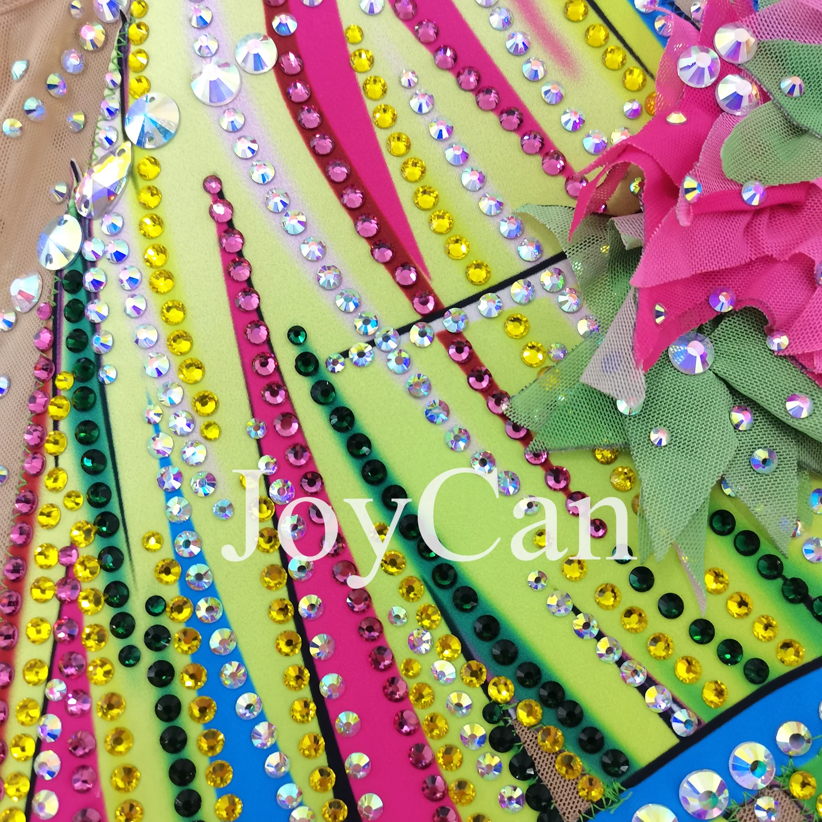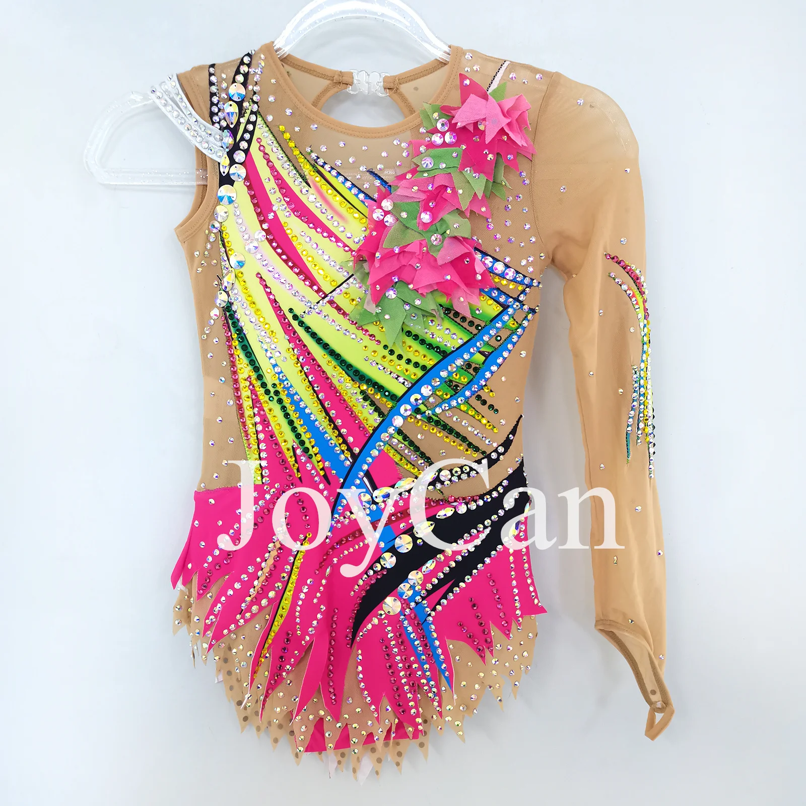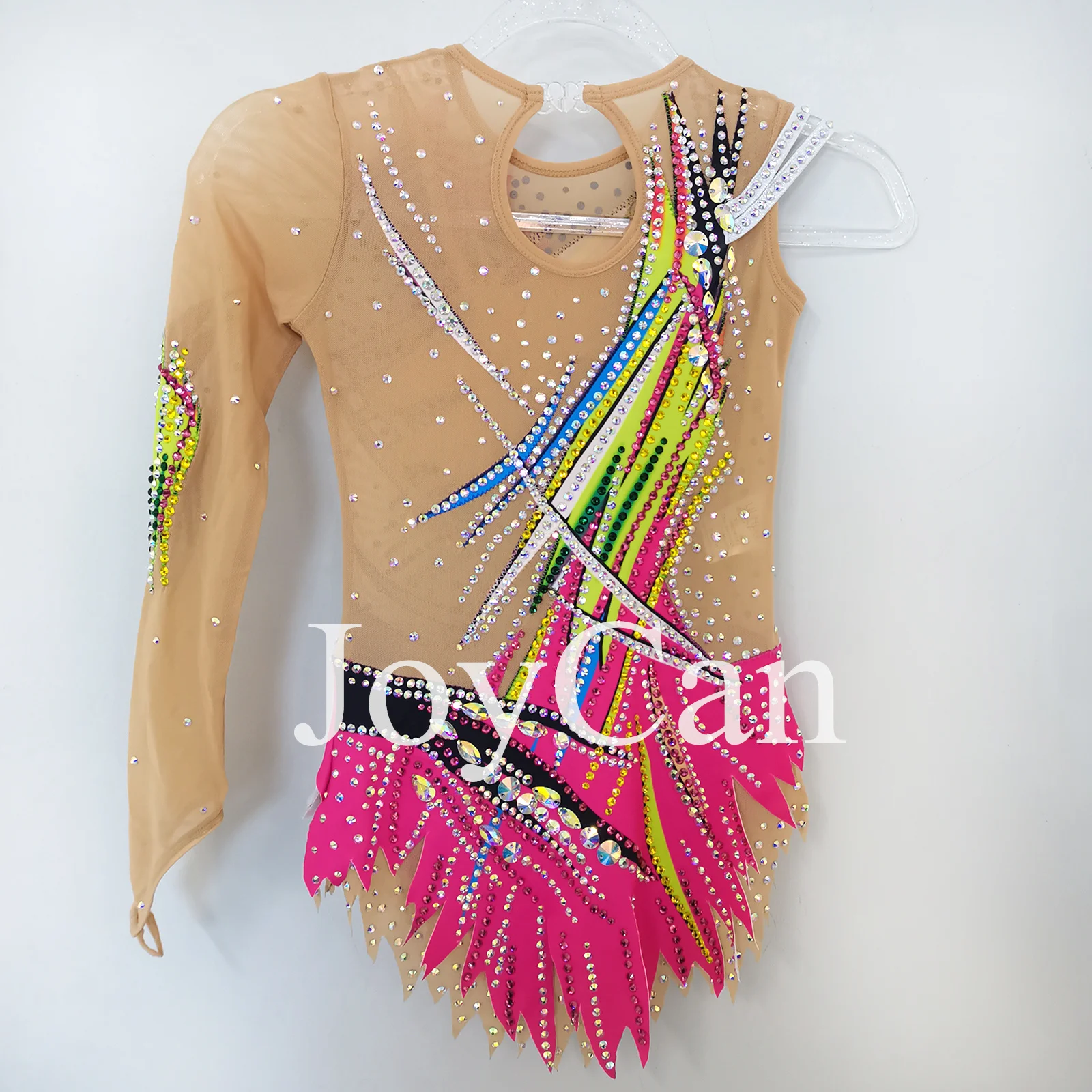 • JoyCan Ice Figure Skating Dress Girls Pink And Yellow Spandex Stretchy Mesh Competition Dance Wear Customized