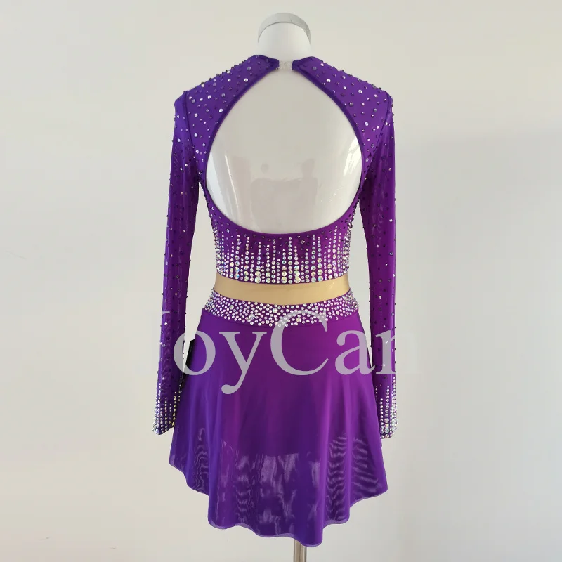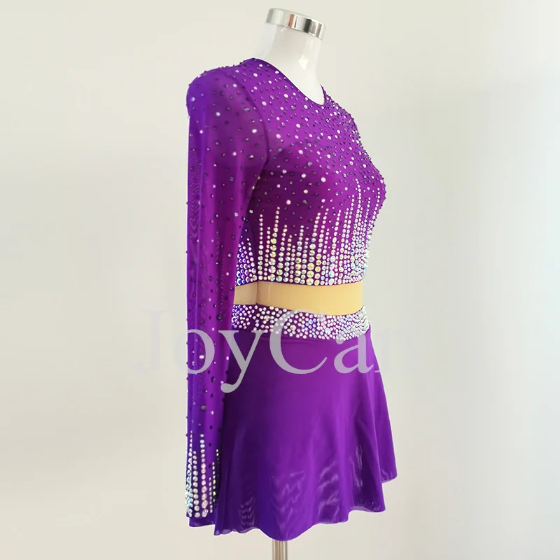 JoyCan Ice Figure Skating Dress Girls Purple Spandex Stretchy Competition Dance Wear Customized