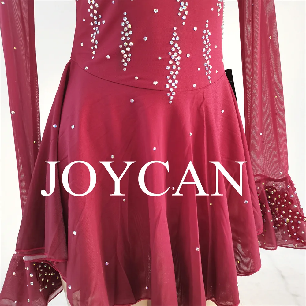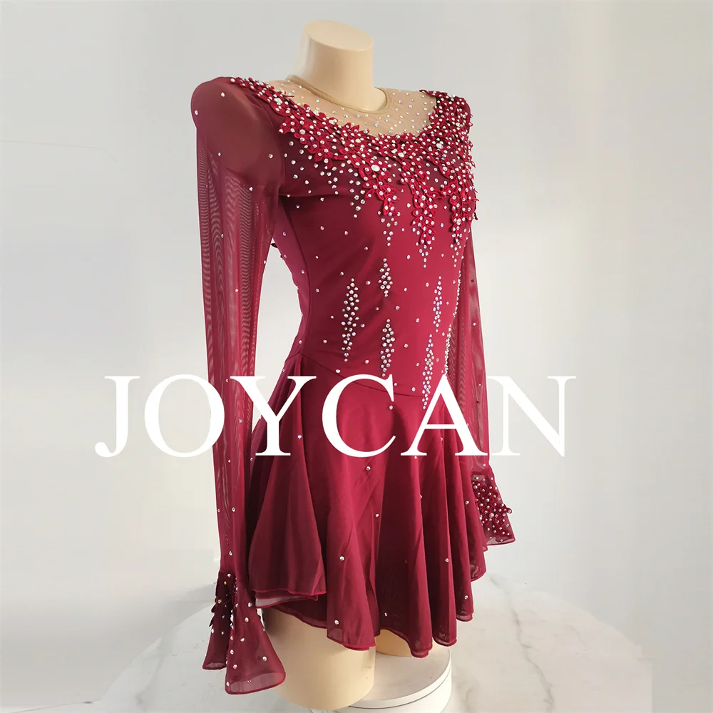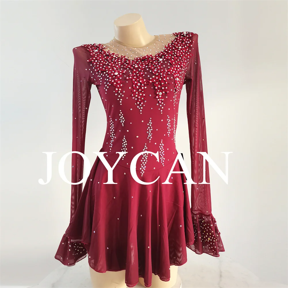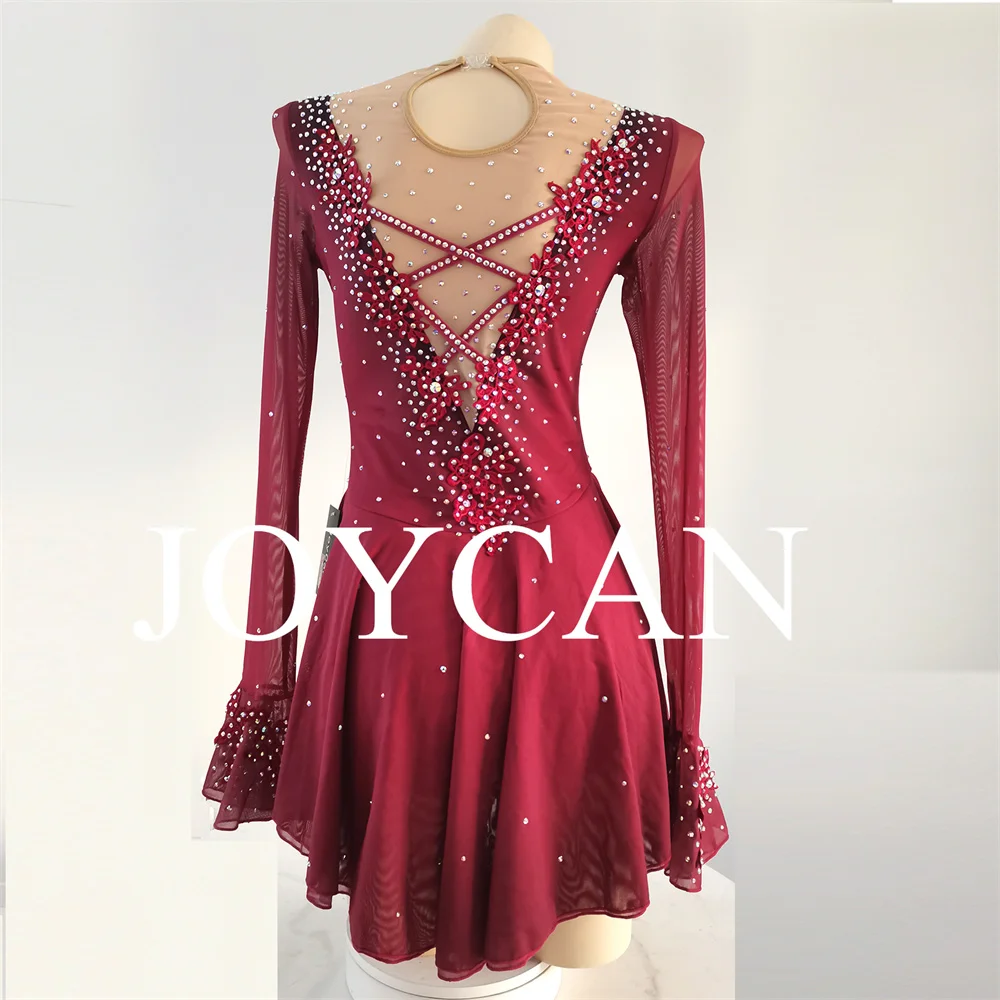 JoyCan Ice Figure Skating Dress Girls Red Spandex Stretchy Competition Dance Wear Customized