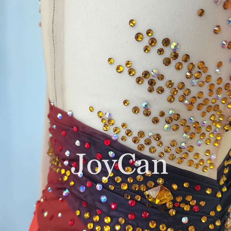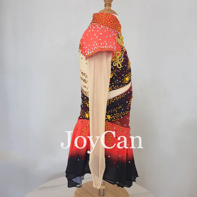 JoyCan Ice Figure Skating Dress Girls Red Spandex Stretchy Competition Dance Wear Customized