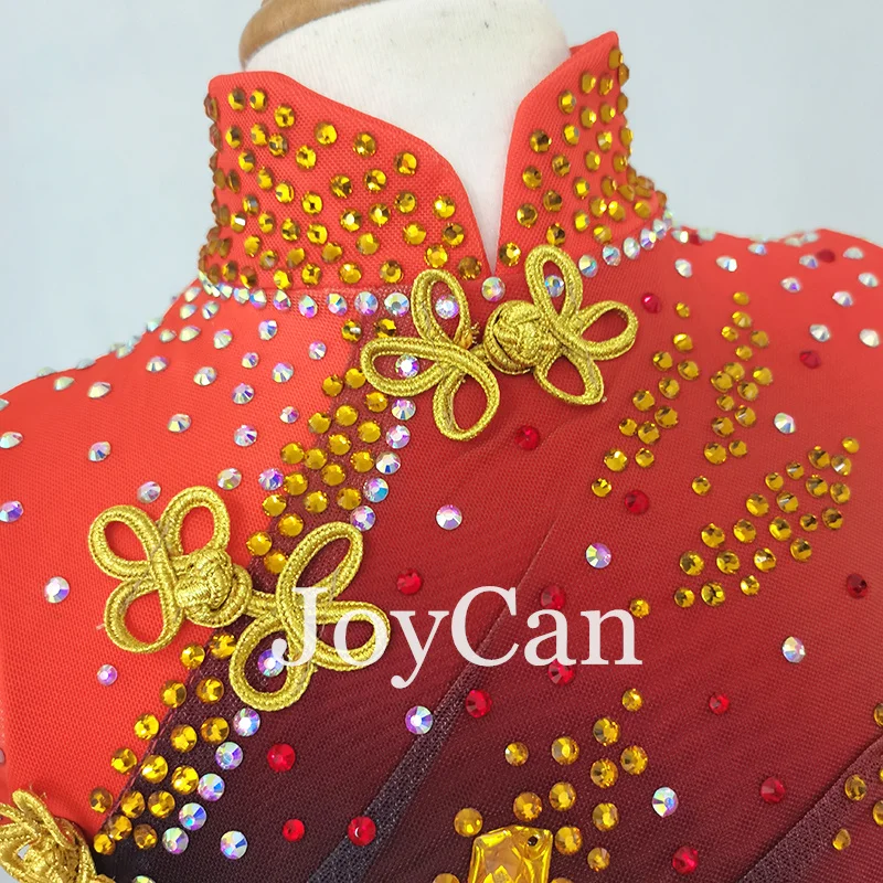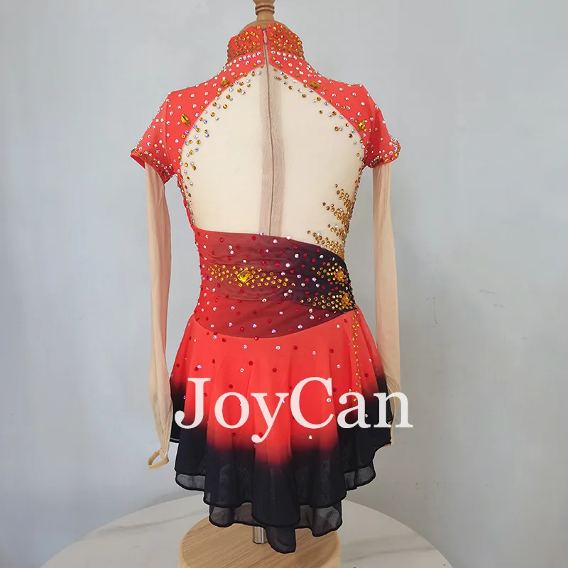 • JoyCan Ice Figure Skating Dress Girls Red Spandex Stretchy Competition Dance Wear Customized
