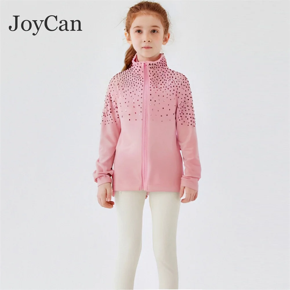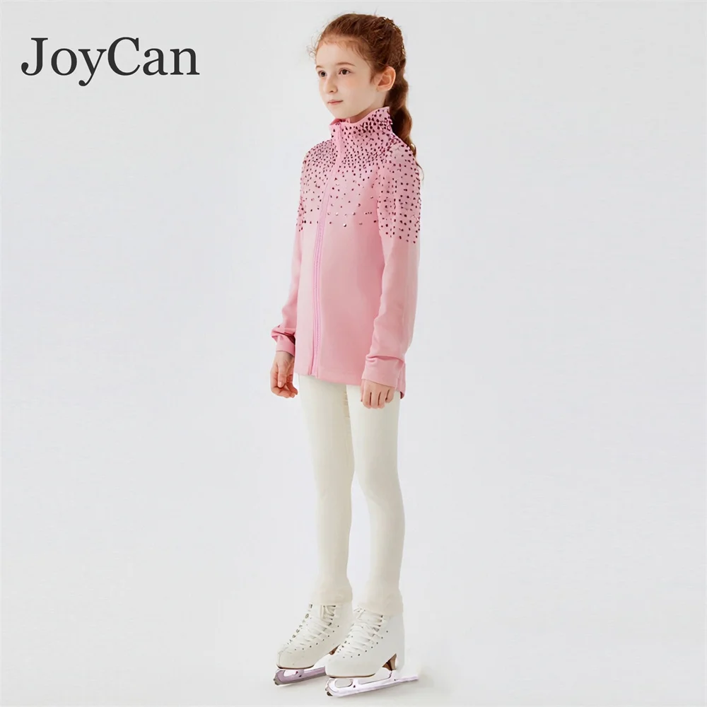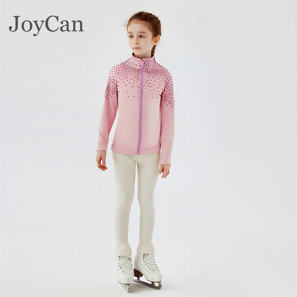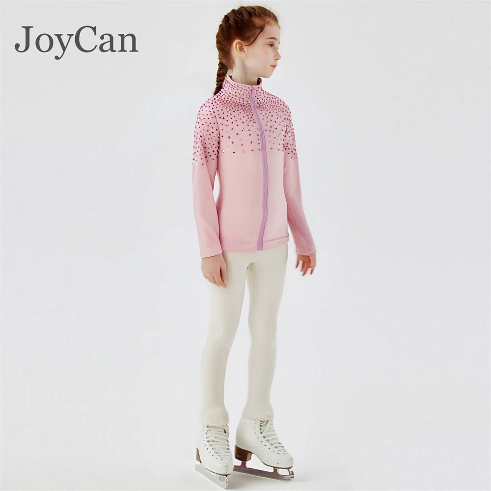 JoyCan Ice Figure Skating Jackets Girls Pink with Stones Training Practice Fleece Customized