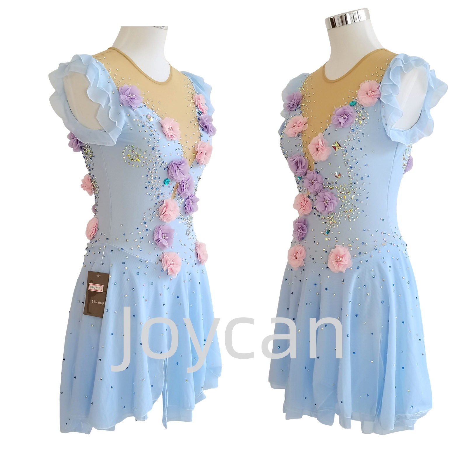 What truly elevates this dress is the intricate flower-shaped appliqué detailing. These delicate embellishments add a touch of femininity and artistry, transforming a simple dress into a work of art. The appliqués can be strategically placed to draw attention to the skater’s movements, creating a harmonious blend of fabric and motion.