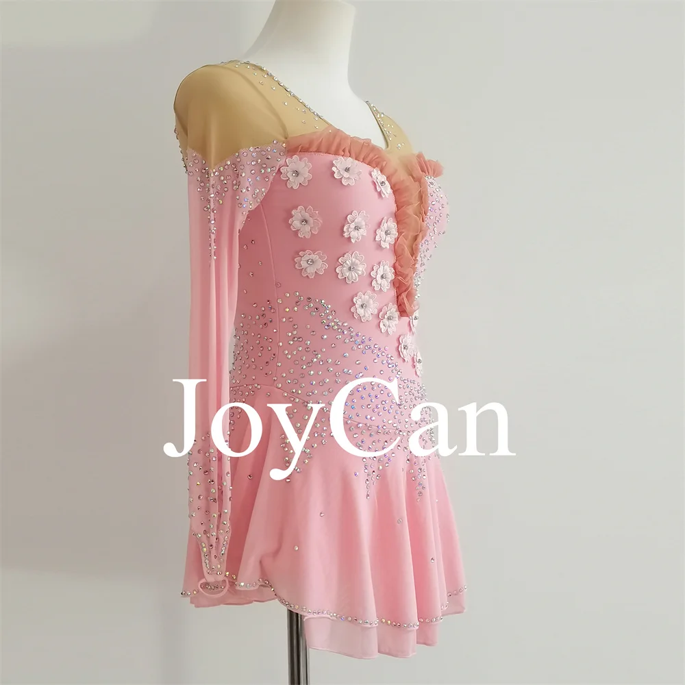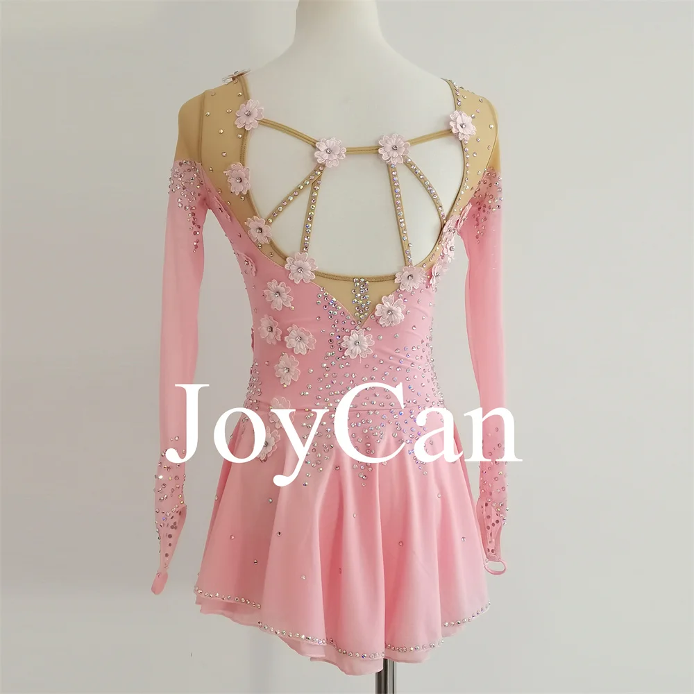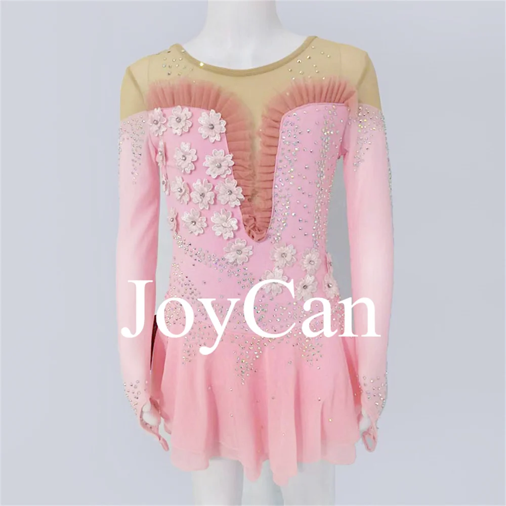 JoyCan Kids Shiny Rhinestones Cheer Mesh Long Sleeves Figure Ice Skating Dance Dress for Girls