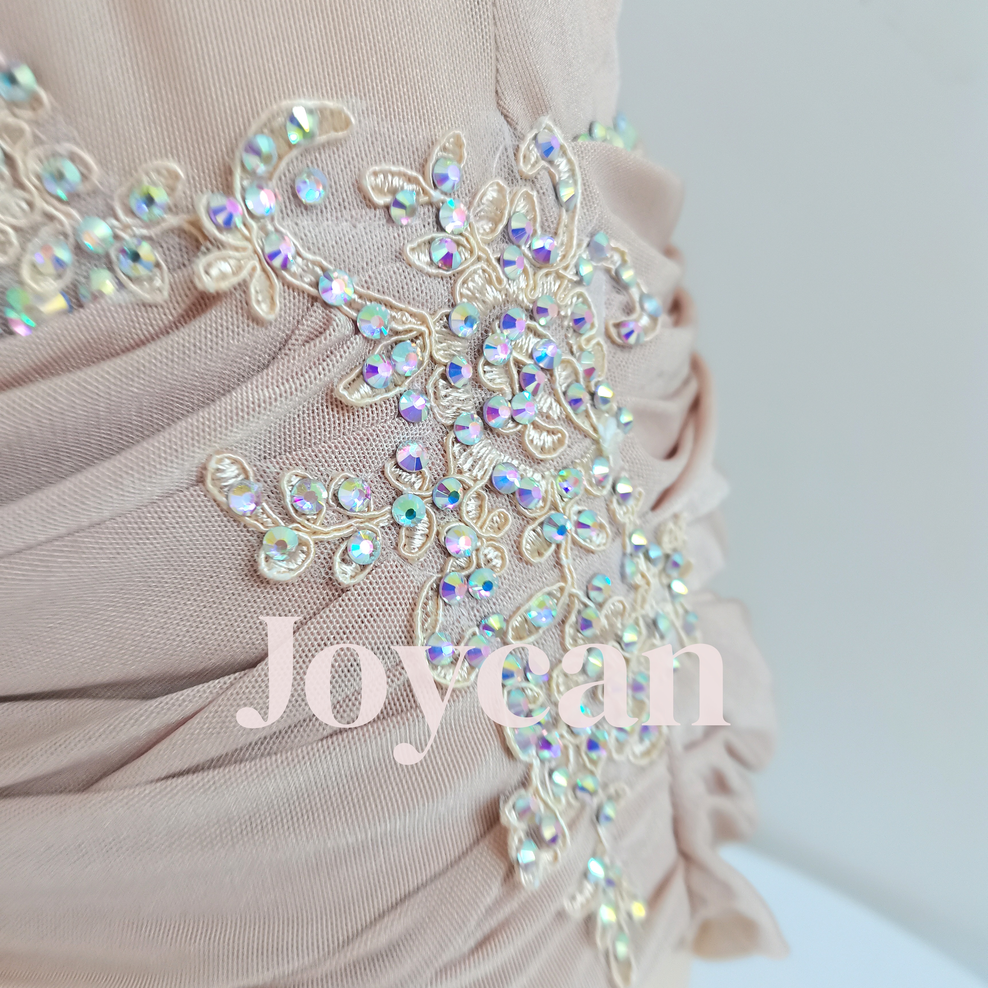 Embrace elegance and express your most fluid movements with the "Enchanted Blossom" dance top. This exquisite piece is designed for the lyrical dancer who tells a story with every gesture. Crafted from high-quality, stretchable fabric, this sleeveless top offers complete freedom of movement, allowing you to extend and twirl without restriction. The soft, delicate pink hue evokes a sense of grace, romance, and youthful energy. The true magic lies in the intricate details. The bodice is adorned with shimmering gemstones that catch the light with every turn, creating a captivating sparkle on stage. Complementing the crystals is a beautiful appliqué design, featuring delicate floral motifs that add a dimensional and artistic texture, making this top a standalone masterpiece. Perfect for lyrical, contemporary, or ballet performances, the "Enchanted Blossom" top is more than just dancewear—it's a piece of wearable art designed to let your inner light shine.