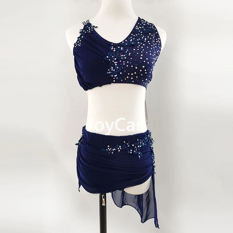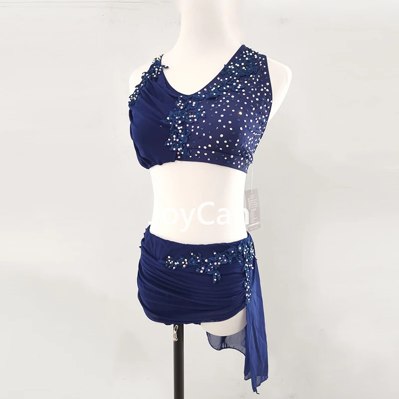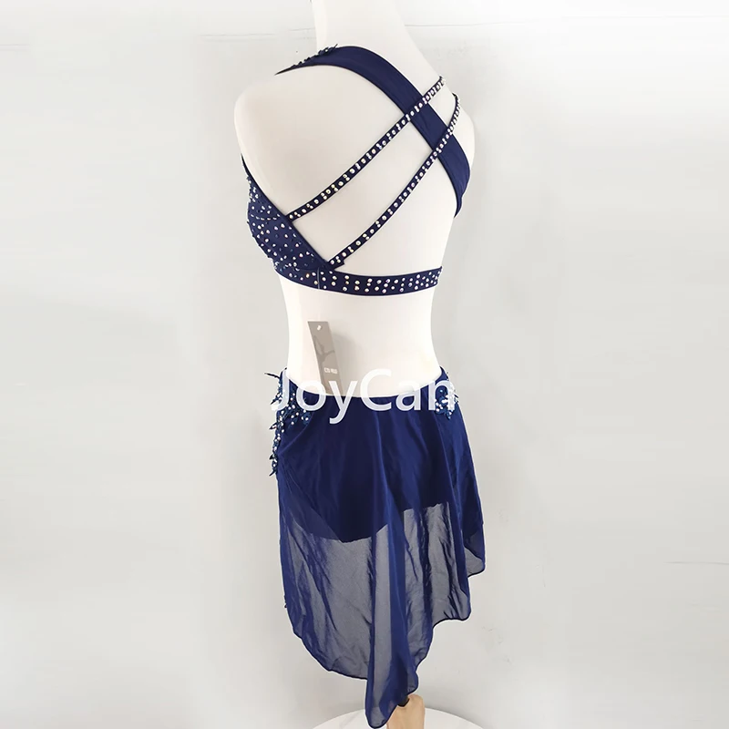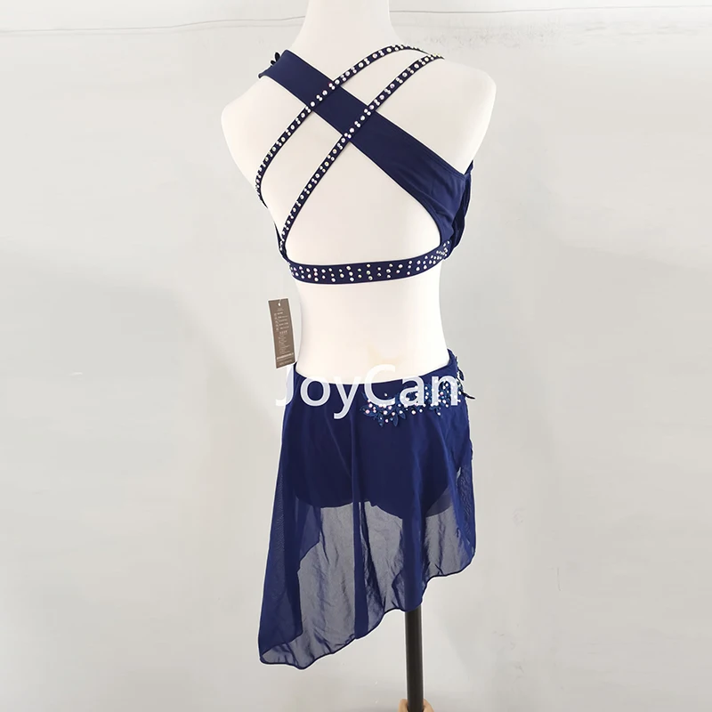 • JoyCan Lyrical Dance Dress Navy Blue Jazz Dance Costume Pole Dancing Clothes Girl Performance Training