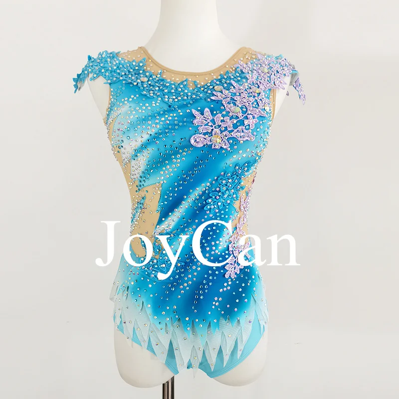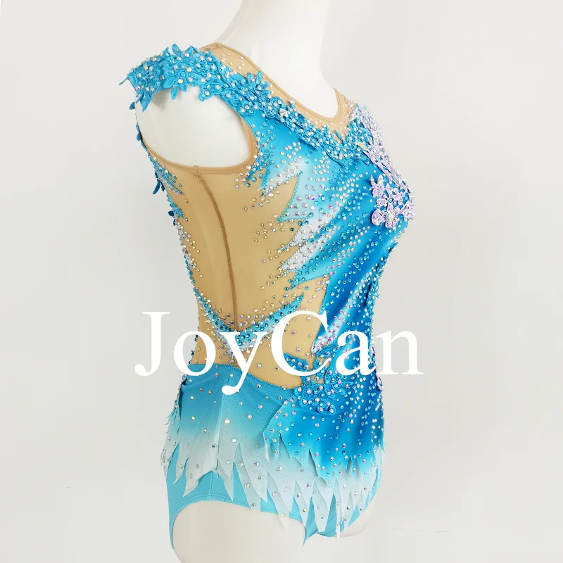 • JoyCan Rhthmic Gymnastics Leotards Girls Women Blue Spandex Elegant Dance Wear for Competitiion