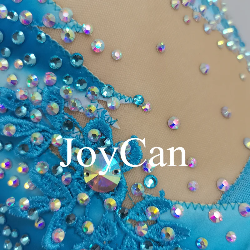 JoyCan Rhthmic Gymnastics Leotards Girls Women Blue Spandex Elegant Dance Wear for Competitiion