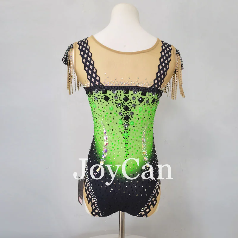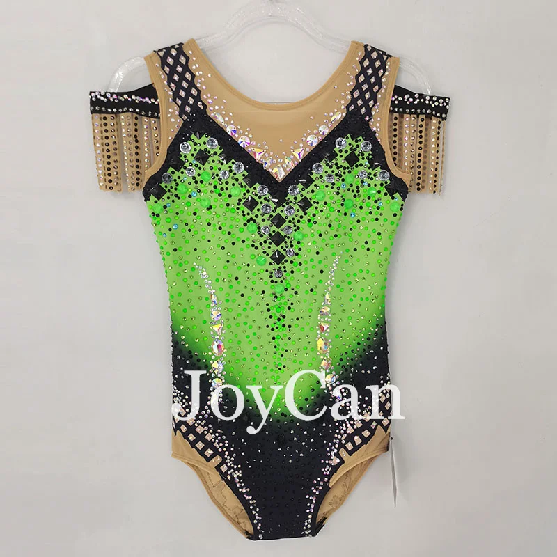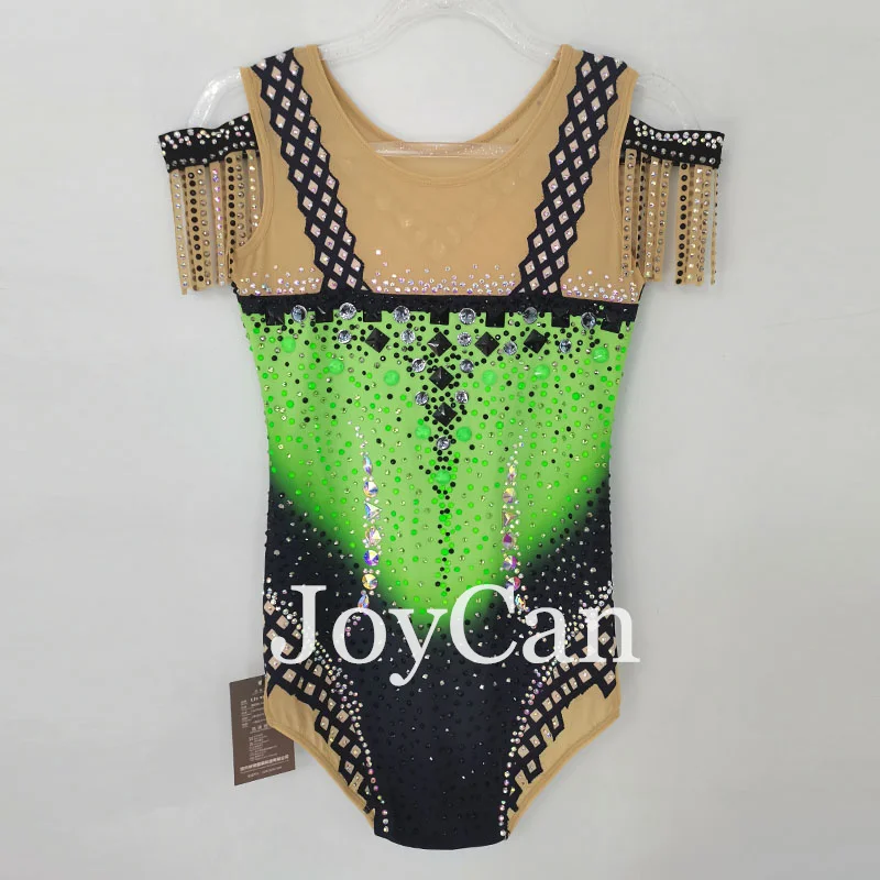 • JoyCan Rhthmic Gymnastics Leotards Girls Women Green Spandex Elegant Dance Wear for Competitiion