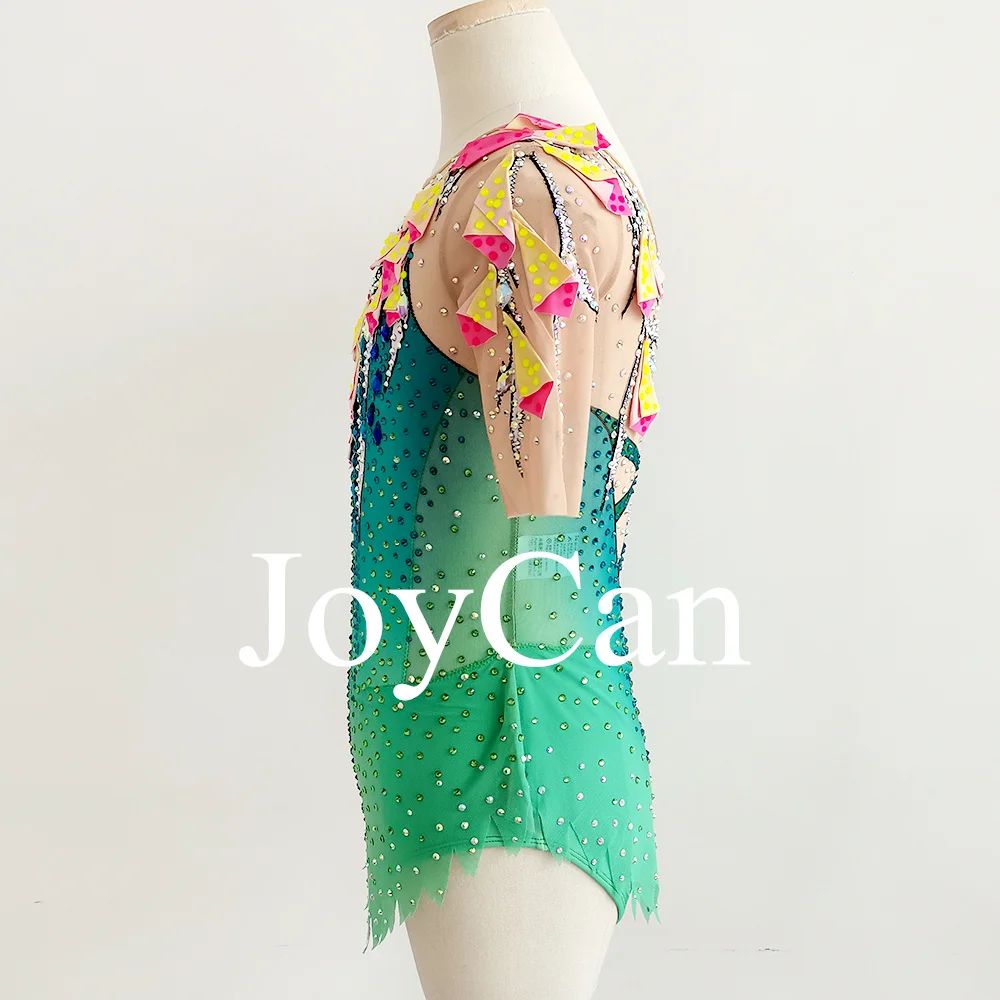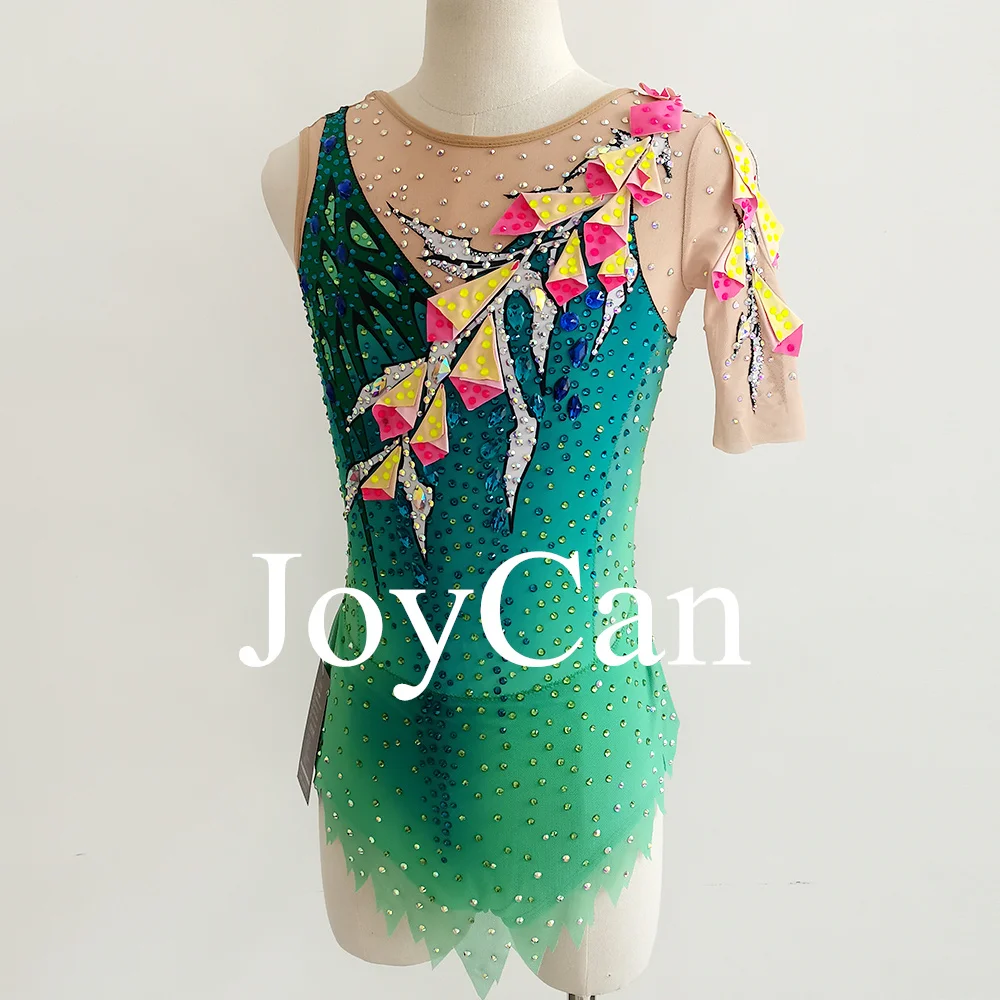 JoyCan Rhthmic Gymnastics Leotards Girls Women Green Spandex Elegant Dance Wear for Competitiion