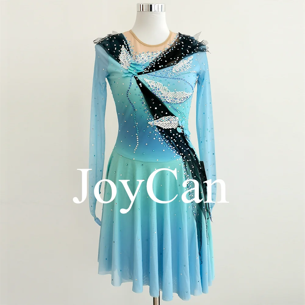 • JoyCan Women’s High-Low Spandex Stretch Yarn Skating Dress with Zipper Back Figure & Ballroom Ice Skating Skirt High Ela