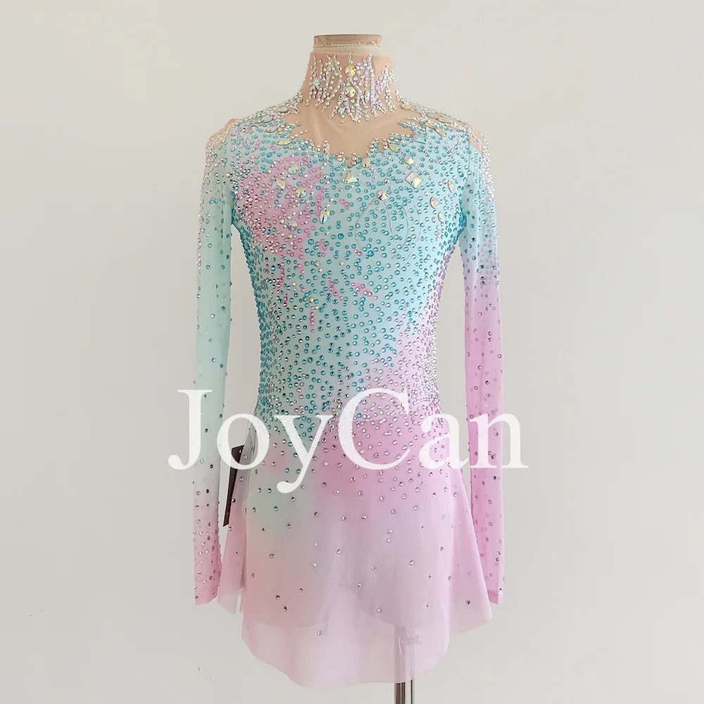 JoyCan Women’s Professional Quality Girls Figure Ice Skating Dress Pink Ballet Dance Leotard with Diamonds Performance Wear