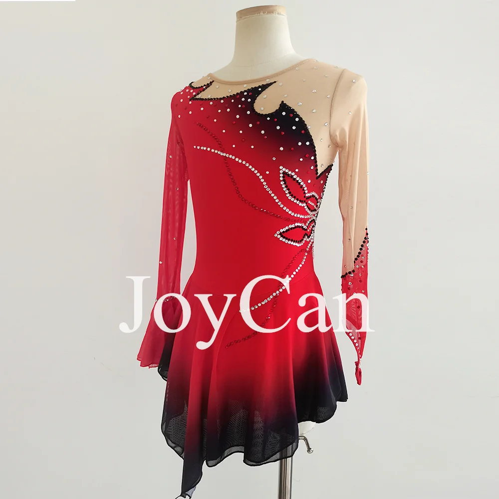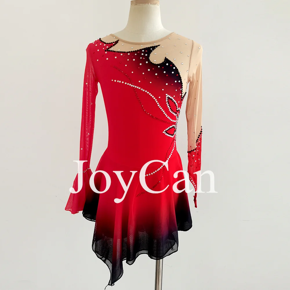 • JoyCan Women’s Professional Quality Girls Figure Ice Skating Dress Red Ballet Dance Leotard with Diamonds Performance Wear