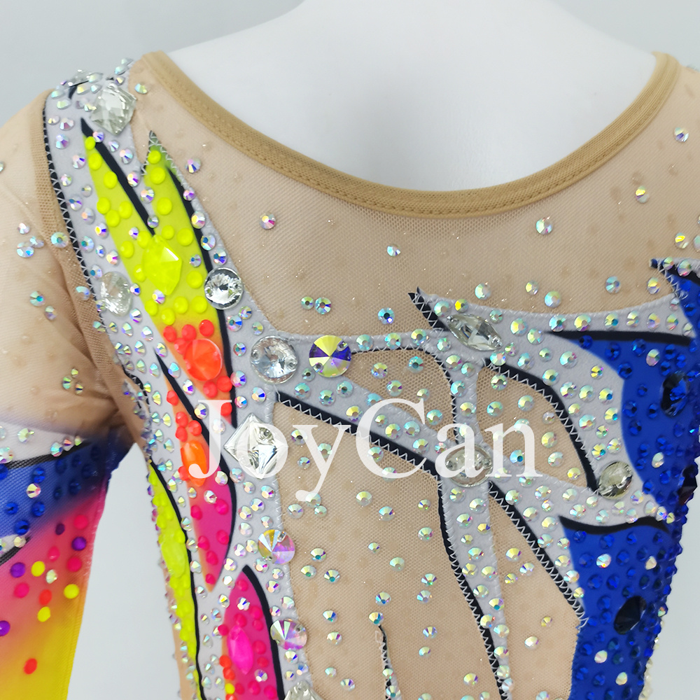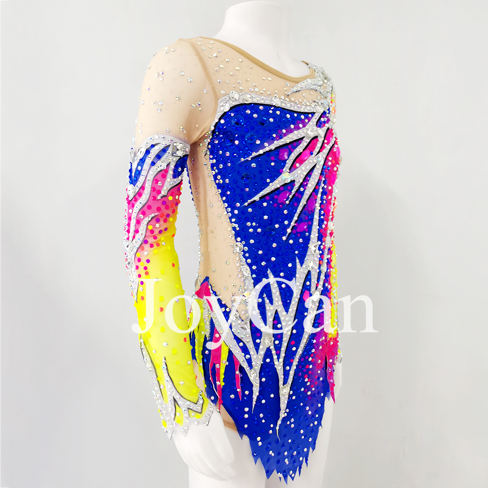 Introducing our stunning and vibrant rhythmic gymnastics leotard, designed to elevate your performance and make you stand out on the floor. Our leotard is not just a piece of clothing, but a statement of elegance, grace, and confidence. Crafted with the finest materials, our leotard is not only visually striking but also offers exceptional comfort and flexibility. The colorful design is sure to catch the eye of the audience and judges, giving you that extra edge during your routine. The high-quality fabric ensures a perfect fit, allowing you to move with ease and perform at your best. Whether you're a competitive gymnast or a passionate performer, our leotard is the perfect choice to showcase your skills and personality. The vibrant colors and intricate details of the design will enhance your movements and add an extra element of artistry to your performance. Our leotard is not just about style, but also about durability and practicality. It is designed to withstand the rigors of training and competition, ensuring that it remains in top condition for a long time. The fabric is breathable and moisture-wicking, keeping you cool and dry even during intense routines. Stand out from the crowd and express your individuality with our colorful rhythmic gymnastics leotard. Whether you prefer bold and bright hues or subtle and elegant tones, we have a design that will suit your taste and personality. Make a statement with your outfit and leave a lasting impression on the audience and judges. In conclusion, our rhythmic gymnastics leotard is a perfect blend of style, comfort, and performance. It is a reflection of your passion and dedication to the sport, and it will undoubtedly elevate your presence on the floor. Choose our leotard and make every routine a memorable and captivating experience.