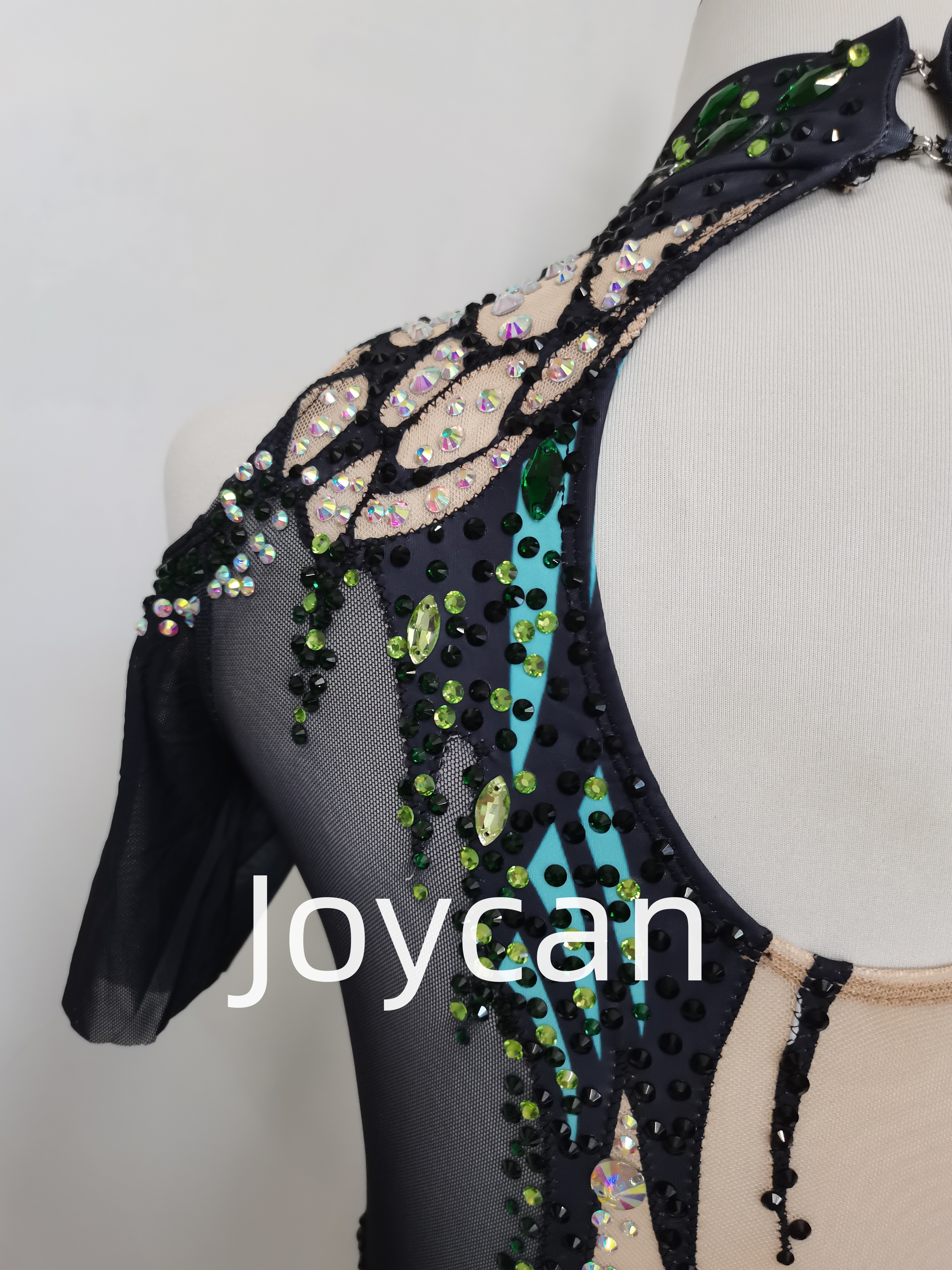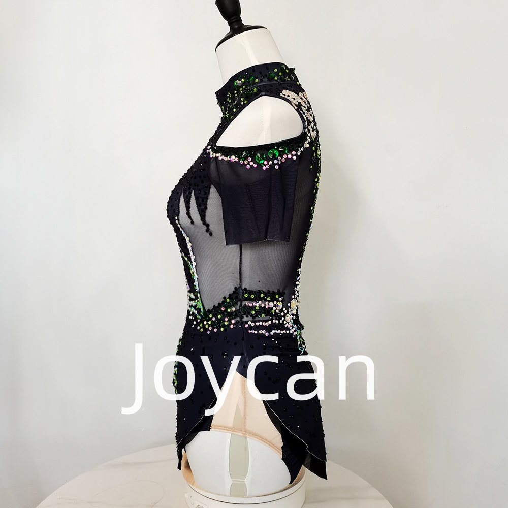 Introducing our stunning Rhythmic Gymnastics Suit, designed for athletes who want to shine both on and off the mat. This exquisite suit combines elegance and functionality, making it the perfect choice for competitions, training sessions, or performances. Crafted from high-quality black mesh fabric, this suit offers a sleek and sophisticated look while ensuring maximum comfort and flexibility. The breathable material allows for unrestricted movement, enabling gymnasts to execute their routines with grace and precision. The lightweight design ensures that you can focus on your performance without any distractions. Elevate your gymnastics experience with our Rhythmic Gymnastics Suit – where elegance meets performance. Embrace the rhythm, express your passion, and make a statement in this stunning black mesh suit adorned with vibrant green embellishments. Get ready to turn heads and leave a lasting impression on the mat!