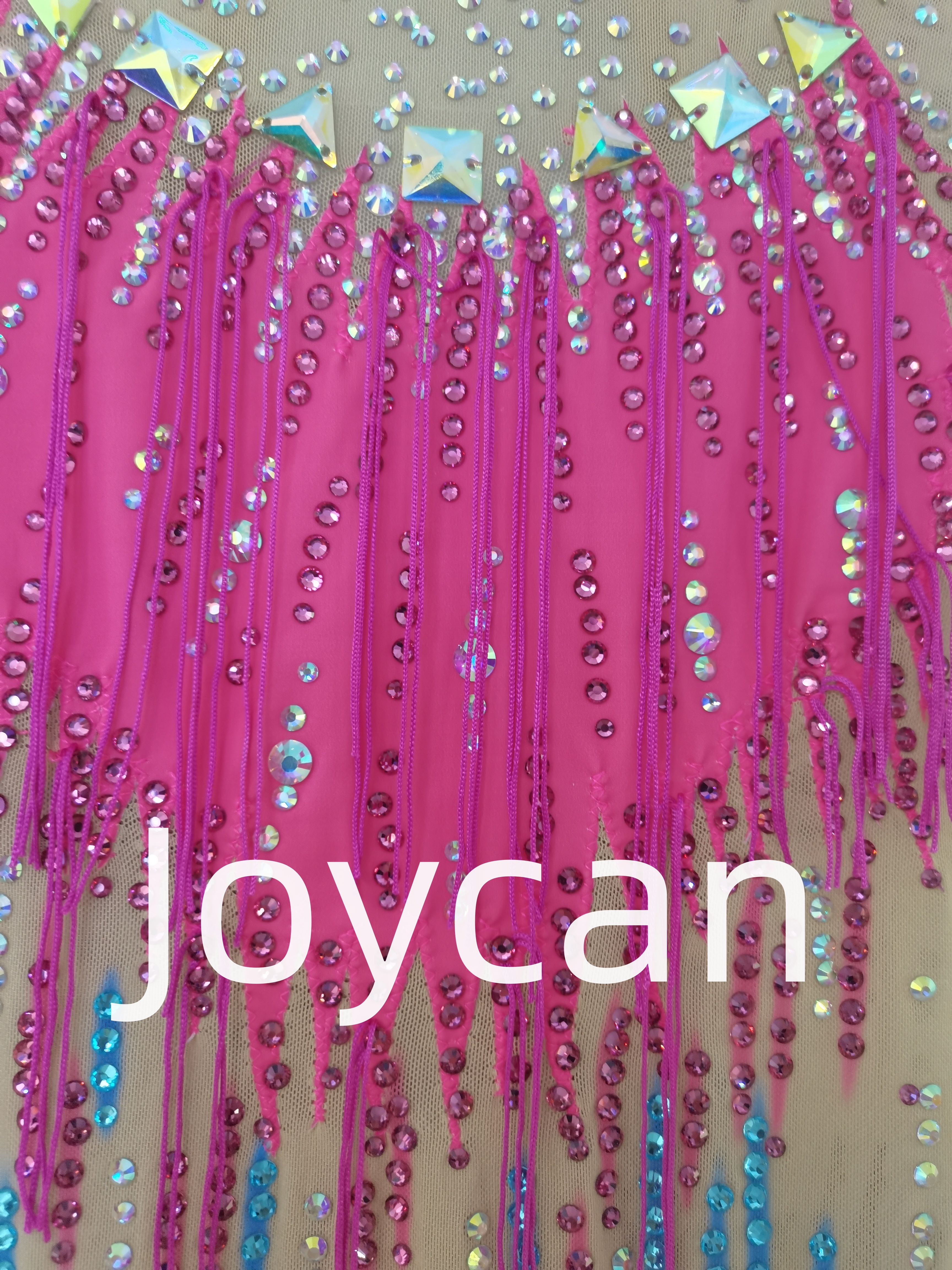 Each piece in this collection is adorned with exquisite triangular diamond patterns that shimmer and shine with every movement. The colored diamonds add an extra layer of flair, reflecting light in a dazzling display that enhances your grace and athleticism. Whether you’re performing a complex routine or simply practicing your skills, our rhythmic gymnastics clothing will make you feel like a true champion.