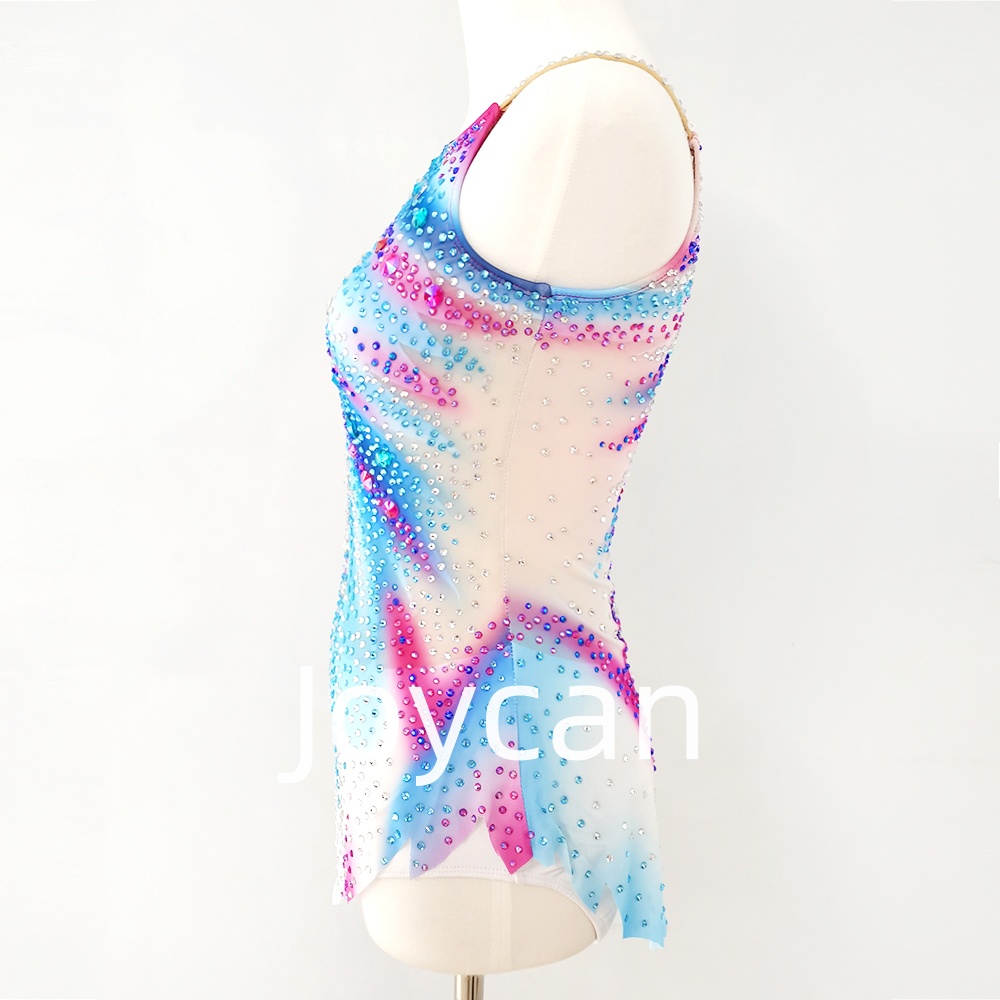 This costume is well made and features an attractive blue base contrasted with bright pink to create a striking look. This color combination will not only enhance your moves but also add a touch of glamour that is sure to catch the judges’ eyes.