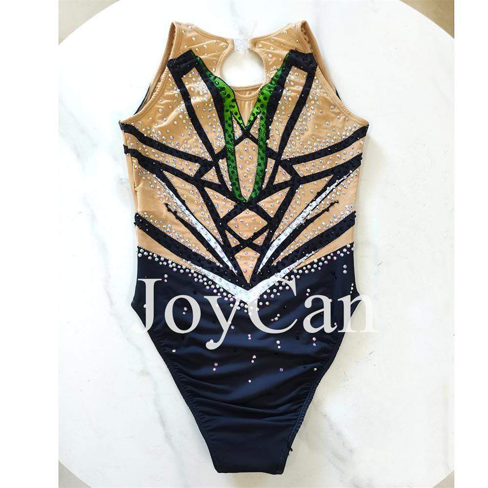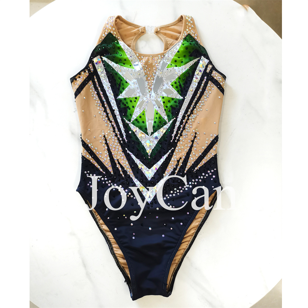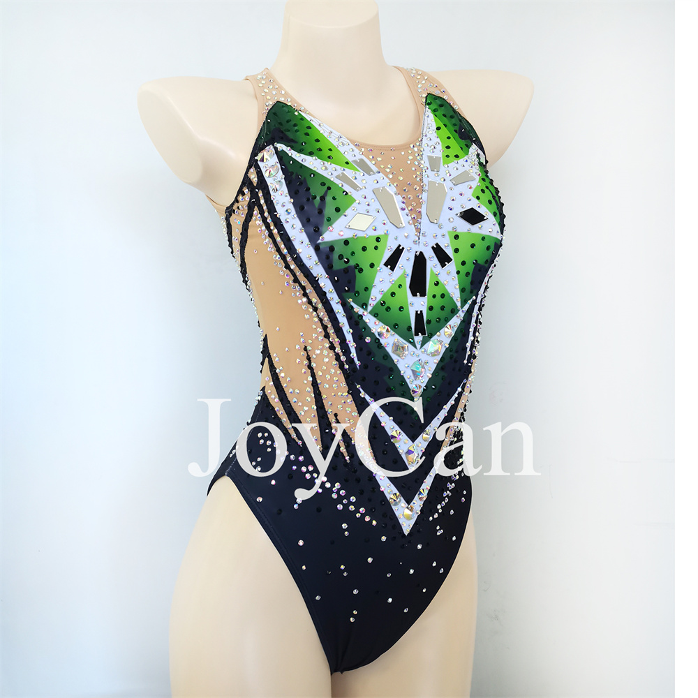 JoyCan Synchronized Swimming Suits Girls Women Performance Gymnastics Leotards Green And Black